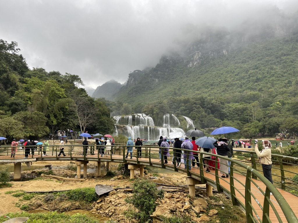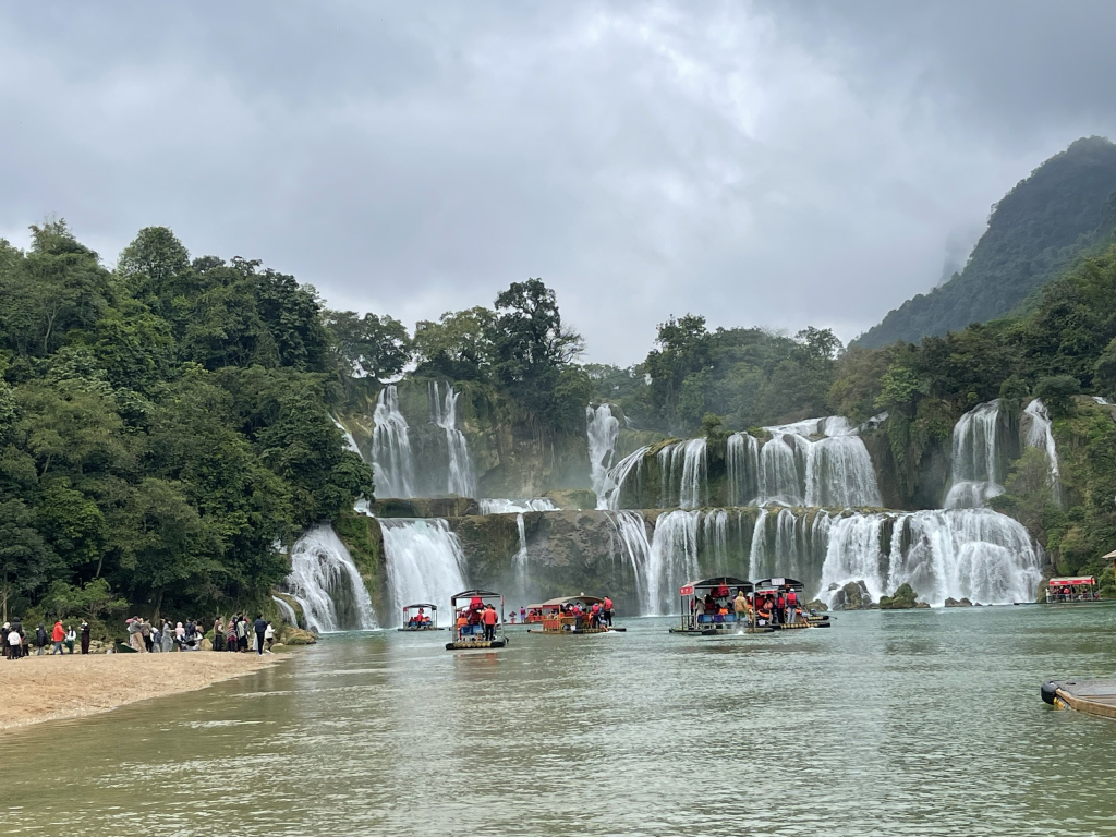 Đông đảo du khách tham quan Thác Bản Giốc.