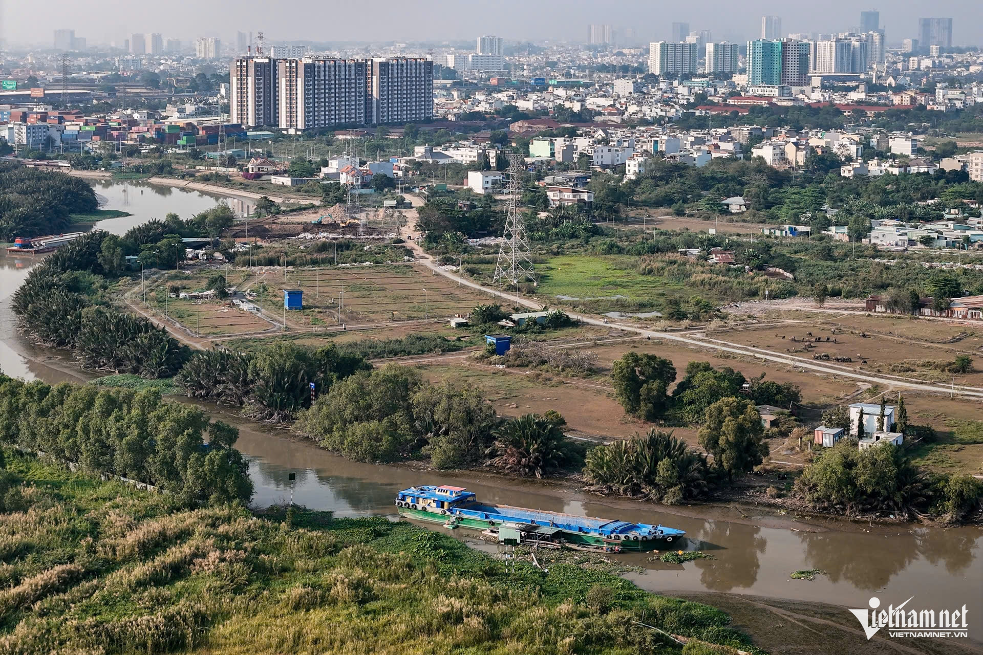 Ghi nhận của PV VietNamNet trước ngày khởi công dự án, phần lớn diện tích khu đất vẫn là đất trống, ao đầm và cỏ mọc um tùm. Các dãy nhà lợp tôn, chủ yếu là nhà trọ phục vụ công nhân và lao động thời vụ, vẫn còn tồn tại chen chúc giữa những mảng đất trống.