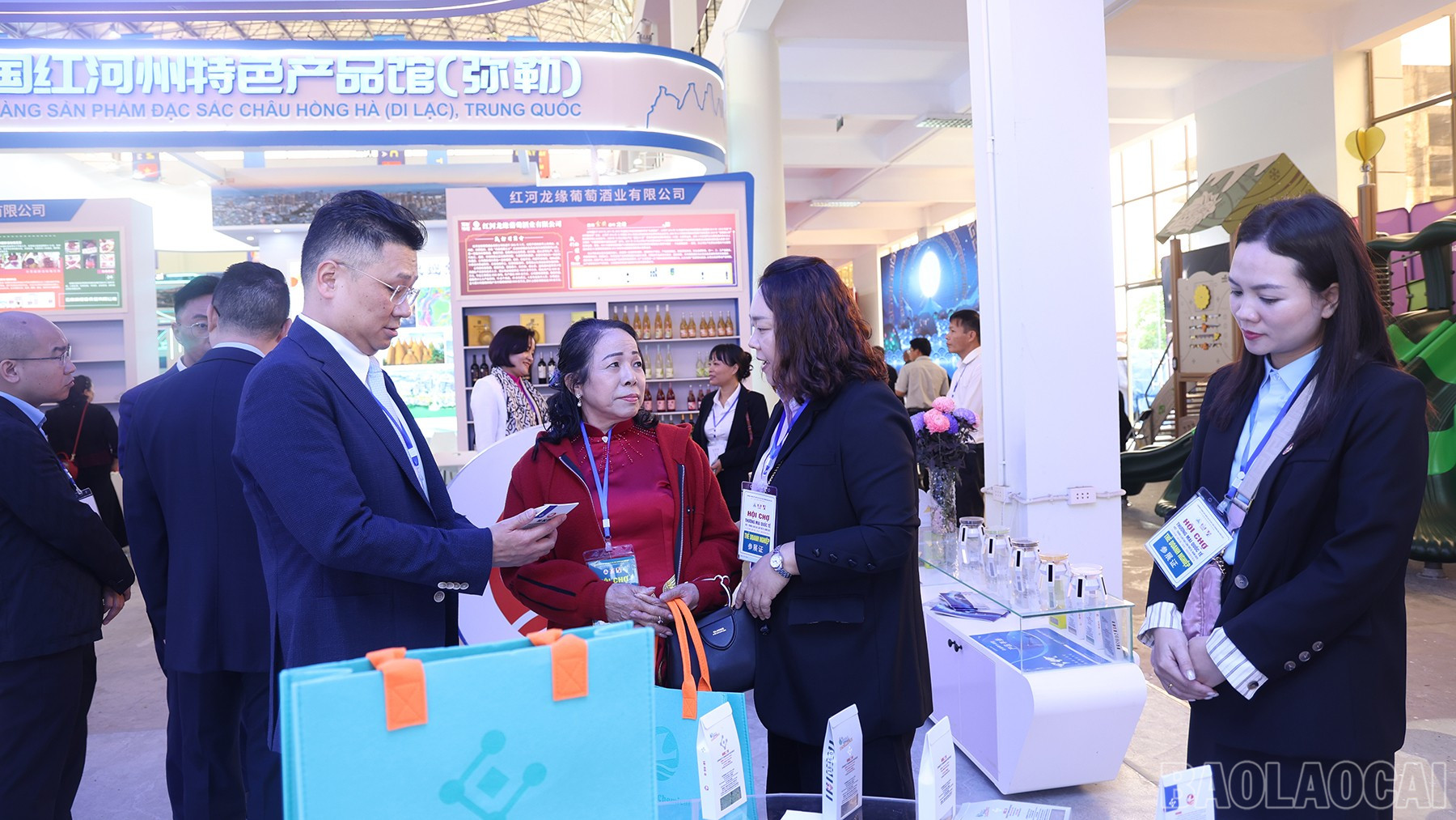 Ông Nguyễn Thái Hòa - Phó Giám đốc Trung tâm Xúc tiến đầu tư, Thương mại và hỗ trợ doanh nghiệp tỉnh Lào Cai cho biết: Khu trưng bày đặc biệt này được các cơ hữu quan của Lào Cai và Châu Hồng Hà lựa chọn những doanh nghiệp mạnh, uy tín tham gia trưng bày, giới thiệu sản phẩm vì vậy nhìn vào đây có thể thấy phần nào bức tranh toàn cảnh cơ cấu kinh tế khu vực hai bên biên giới.