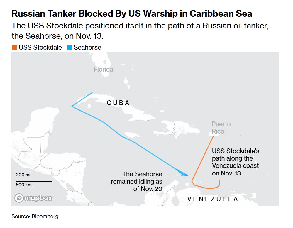Khu trục hạm USS Stockdale (DDG-106) lớp Arleigh Burke của Hải quân Mỹ đã chặn đường tàu chở dầu Seahorse thuộc "hạm đội bóng tối" của Nga, khi nó đang tiến về phía lãnh hải Venezuela.