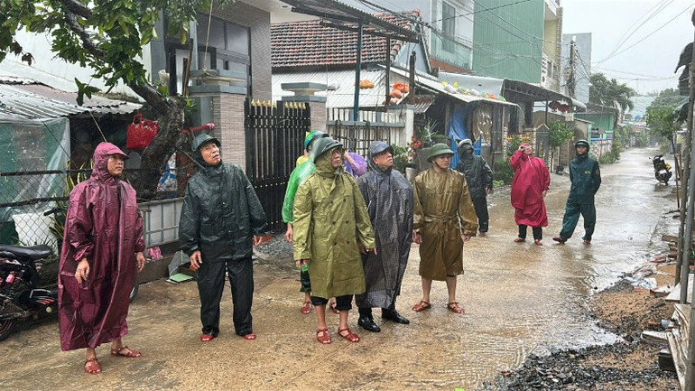 Phó Chủ tịch Ủy ban nhân dân tỉnh Đắk Lắk Nguyễn Thiên Văn và đoàn công tác kiểm tra công tác di dời người dân, chằng chống nhà cửa tại xã Tuy An Đông.