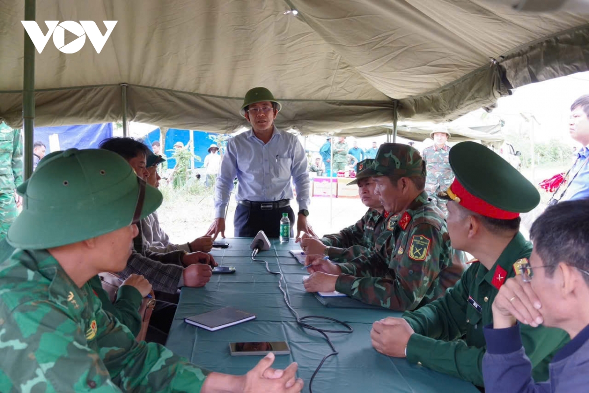 Sở Chỉ huy tiền phương đã được thiết lập ngay trong đêm để chỉ đạo toàn bộ công tác tìm kiếm. Tuy nhiên, do hiện trường tiếp tục phát sinh tiếng nổ, sạt trượt và bùn đất quá nhão, lực lượng chức năng chưa thể tiếp cận vị trí nghi có người bị vùi lấp.