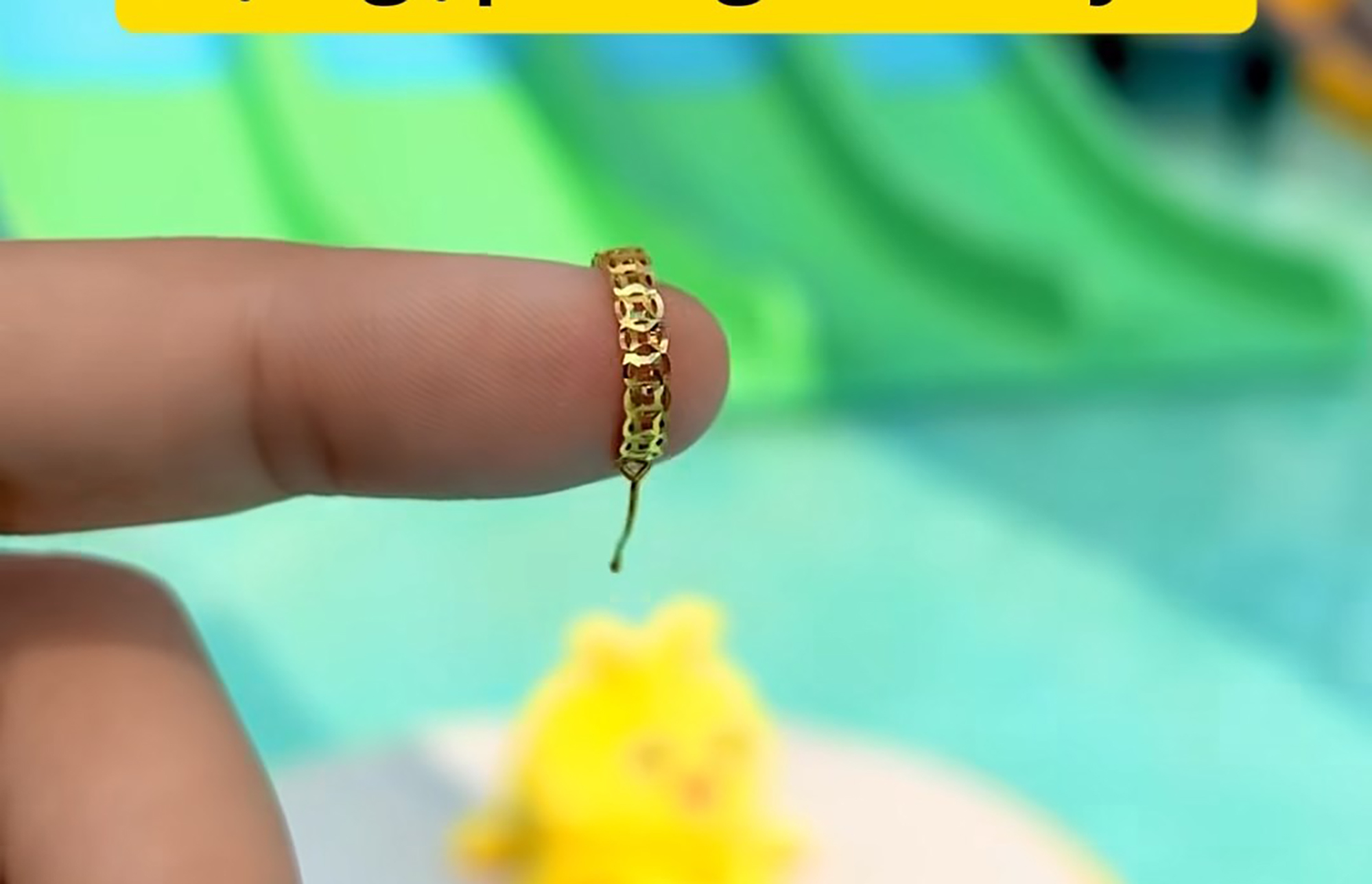 Chiếc bông tai vàng được các nhân viên khu vui chơi nhặt được từ tháng 1-2026. Ảnh: H. TÂM