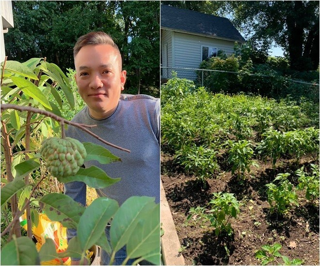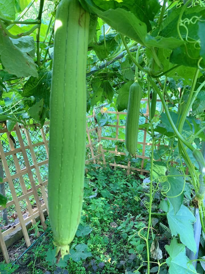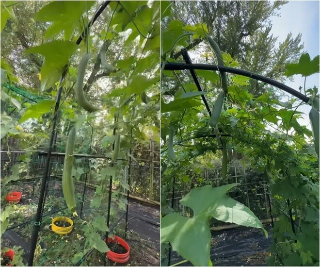 Ở Mỹ nhưng khu vườn vẫn đủ loại cây trái phổ biến ở Việt Nam như mướp hương, bầu, khổ qua, quất, ớt...Ảnh chụp màn hình