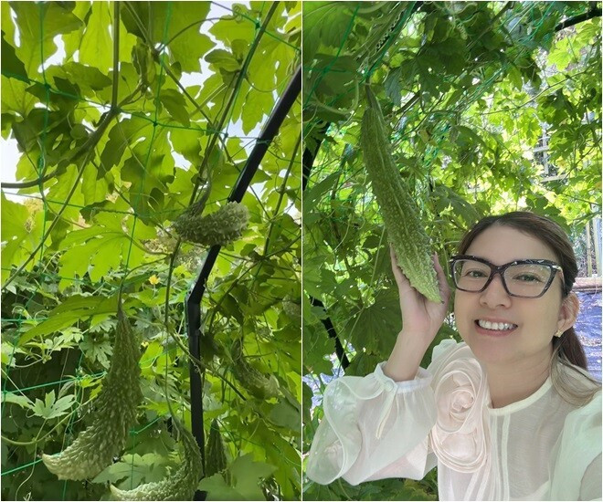 Ông xã Phạm Thanh Thảo chia sẻ, khổ qua trồng chơi mà hơn 100 trái, ăn không kịp. Ảnh: FBNV
