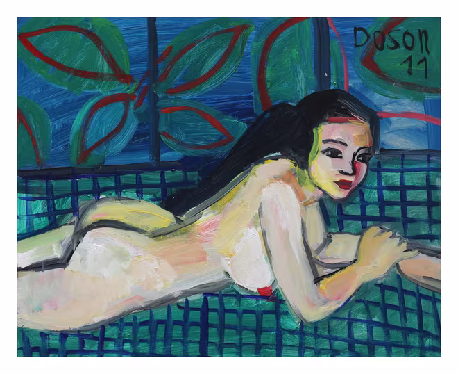 Trong loạt tác phẩm được giới thiệu lần này, có lẽ, các tác phẩm tranh nude là ấn tượng hơn cả. Và đây cũng là đề tài Đỗ Sơn yêu thích thể hiện trong nhiều năm. Từ nhiều ký họa chì, bút dạ màu, phấn màu được ông thực hiện liên tục, nhiều năm, phần lớn trực họa với mẫu vẽ tại xưởng. Từ dáng đơn, nhóm đôi, nhóm ba, cho tới hàng chục thế dáng khỏa thân tràn kín mặt tranh. Từ các chủ đề chân dung, trang điểm, sưởi nắng, mẫu tử, cho tới tắm tiên, dù là thiếu nữ hay bà mẹ, cơ thể họ luôn căng đầy sức sống ở bầu ngực, dáng hông, ở các tư thế không ngại ngùng mà tự nhiên hòa và khung cảnh.