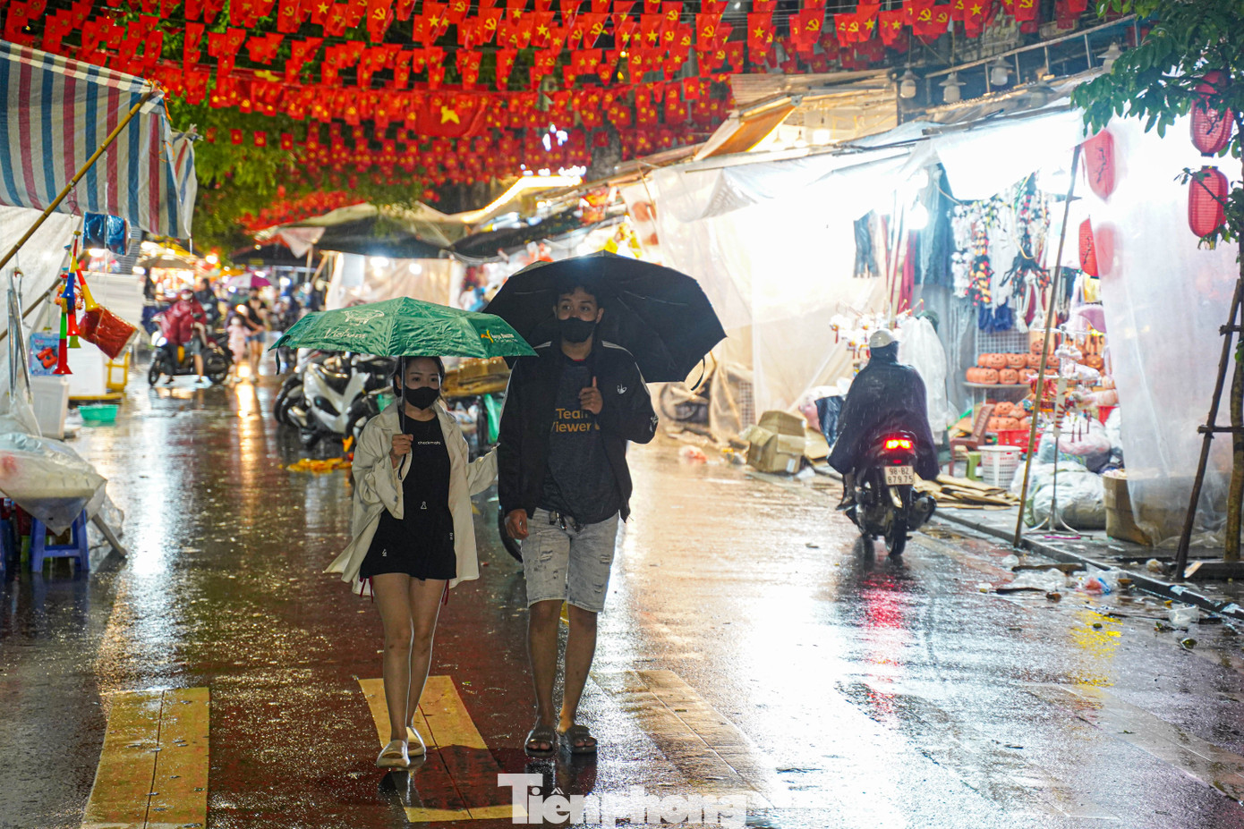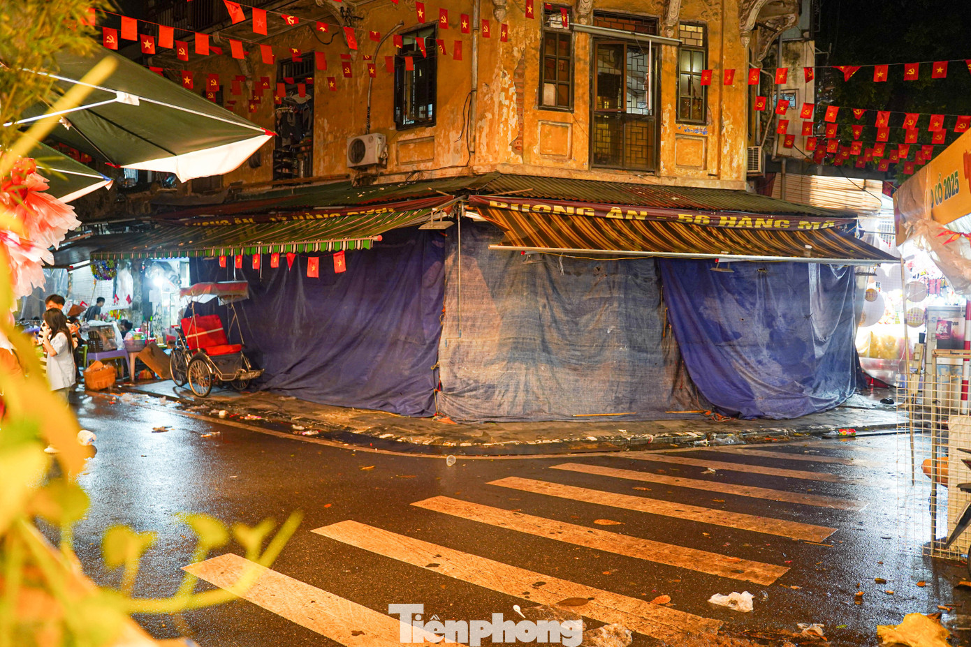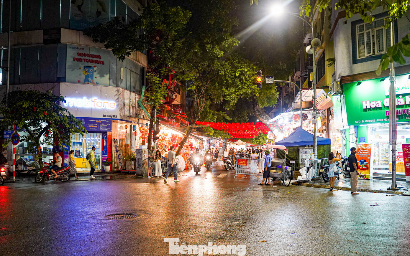 Khoảng 19h40, mưa nặng hạt hơn, khung cảnh vắng vẻ bao trùm phố Hàng Mã, chỉ lác đác vài người đi lại.