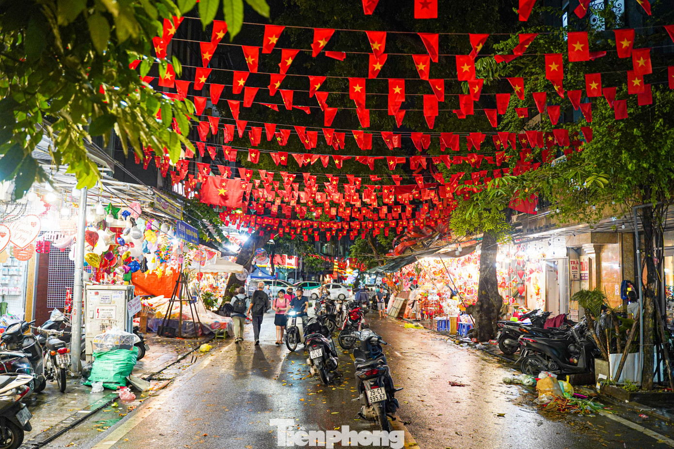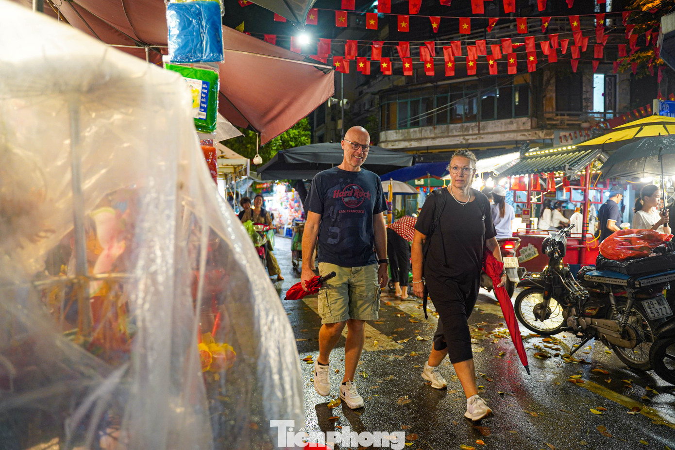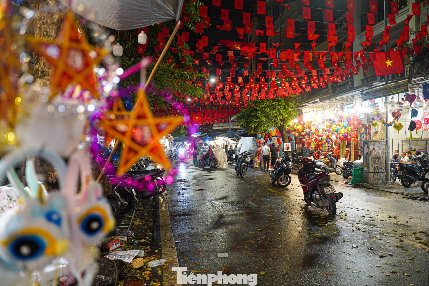 Khoảng 19h40, mưa nặng hạt hơn, khung cảnh vắng vẻ bao trùm phố Hàng Mã, chỉ lác đác vài người đi lại.