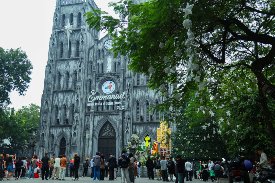 Những ngày này, không khí lễ hội Giáng sinh đang tràn ngập khắp mọi nơi trên địa bàn Thủ đô. Nhà thờ Lớn (phường Hoàn Kiếm, Hà Nội) trở thành điểm hẹn quen thuộc của người dân và du khách khi dịp lễ đến. (Ảnh: Nhật Minh/Vietnam+)