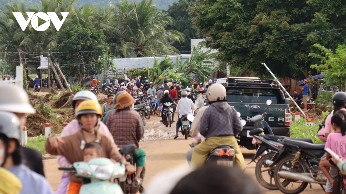 Dòng người đổ về hiện trường vụ vỡ đập từ sáng sớm.