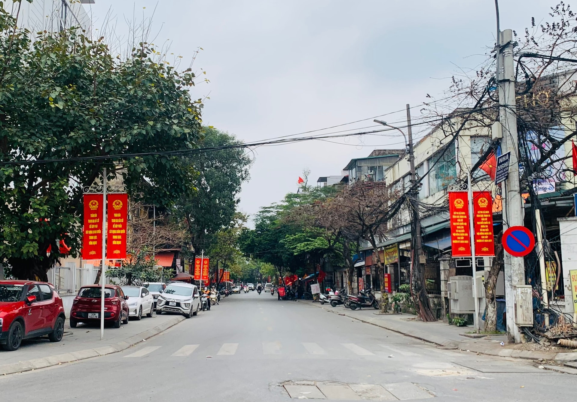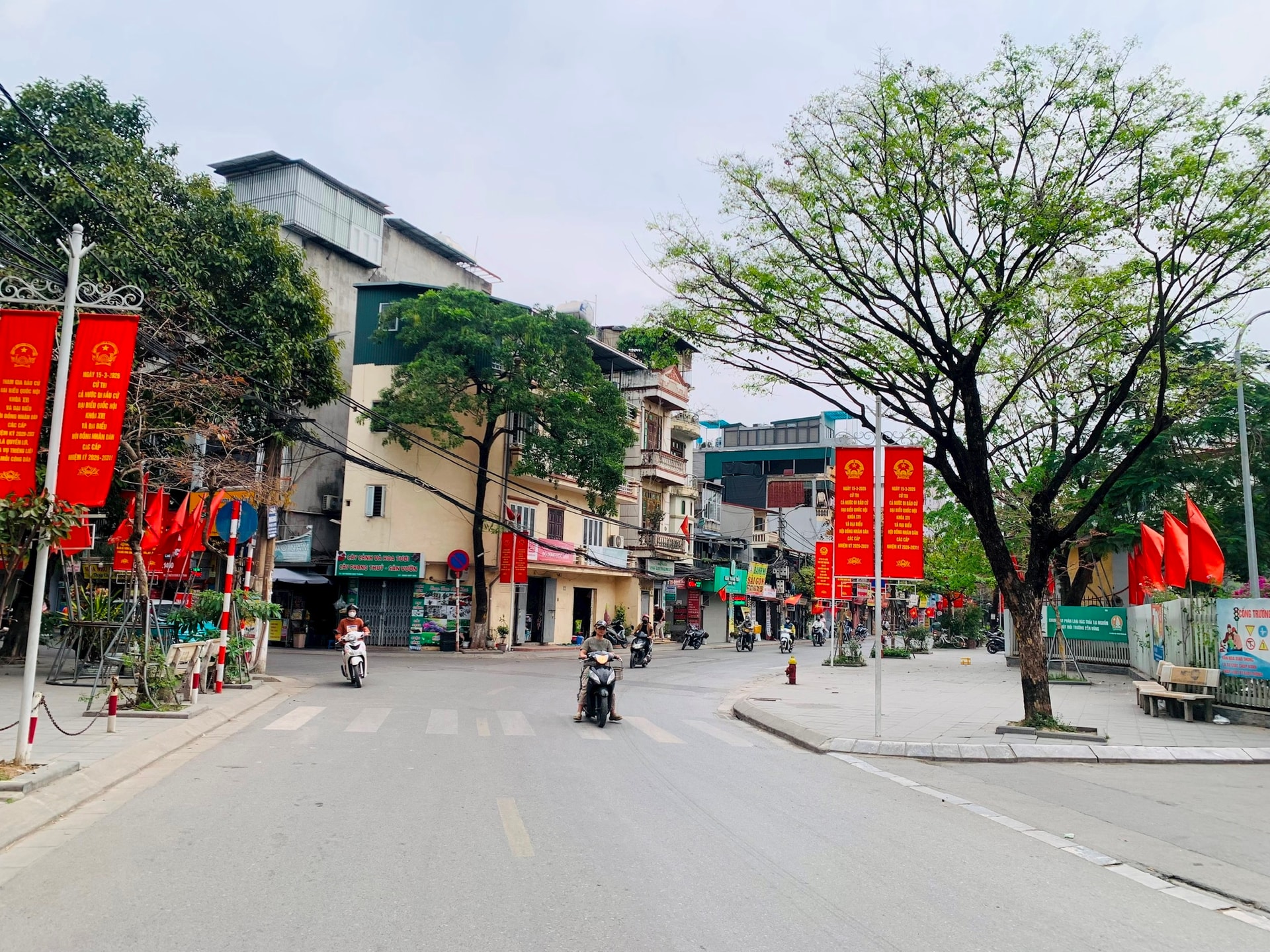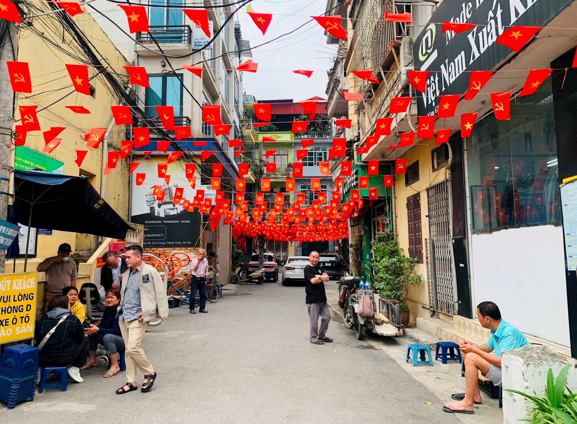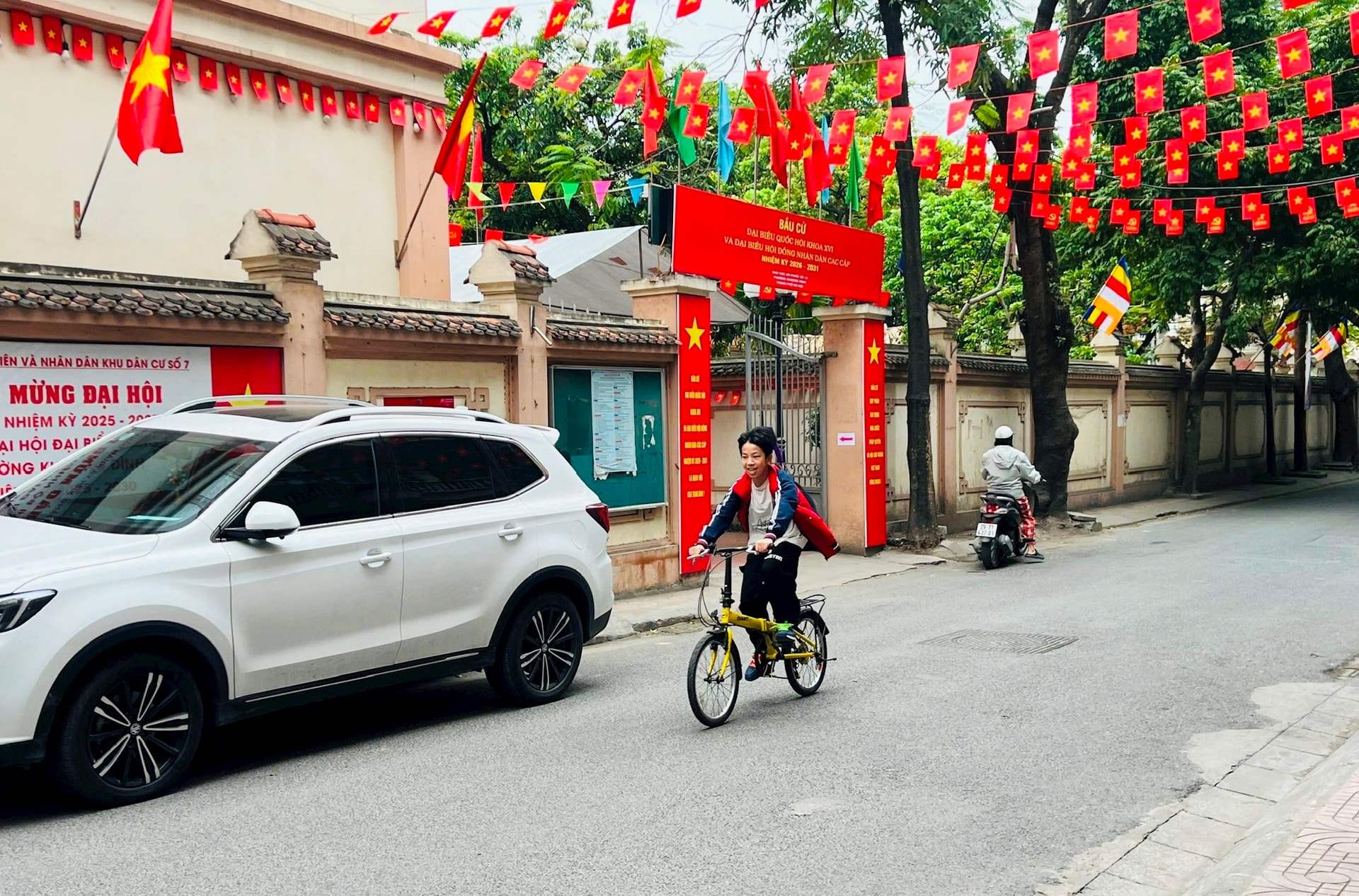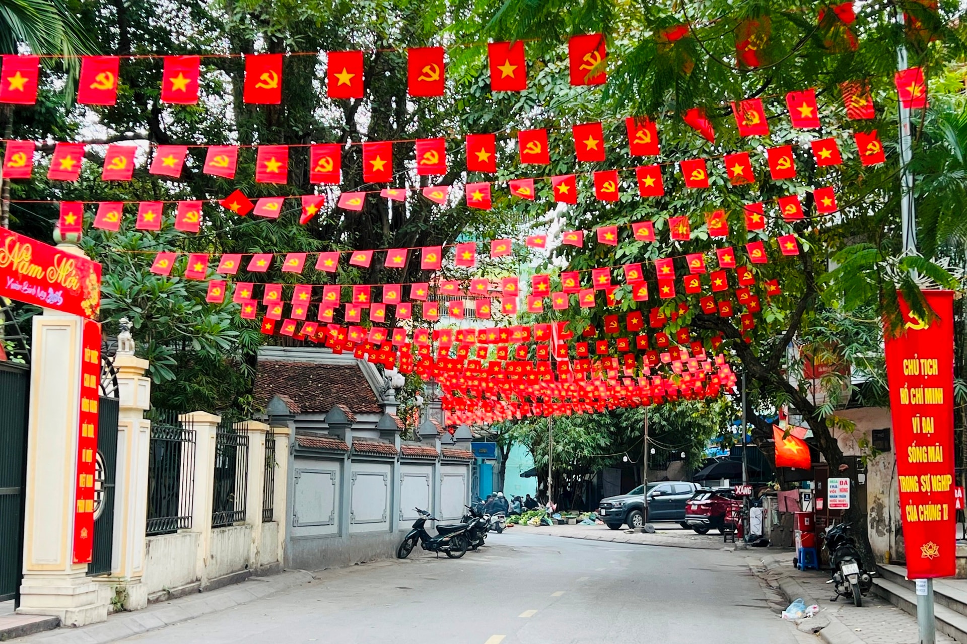 Người dân treo cờ Tổ quốc, cờ Đảng trong các ngõ phố và trước nhà, thể hiện sự hưởng ứng và niềm vui hướng tới ngày hội bầu cử.