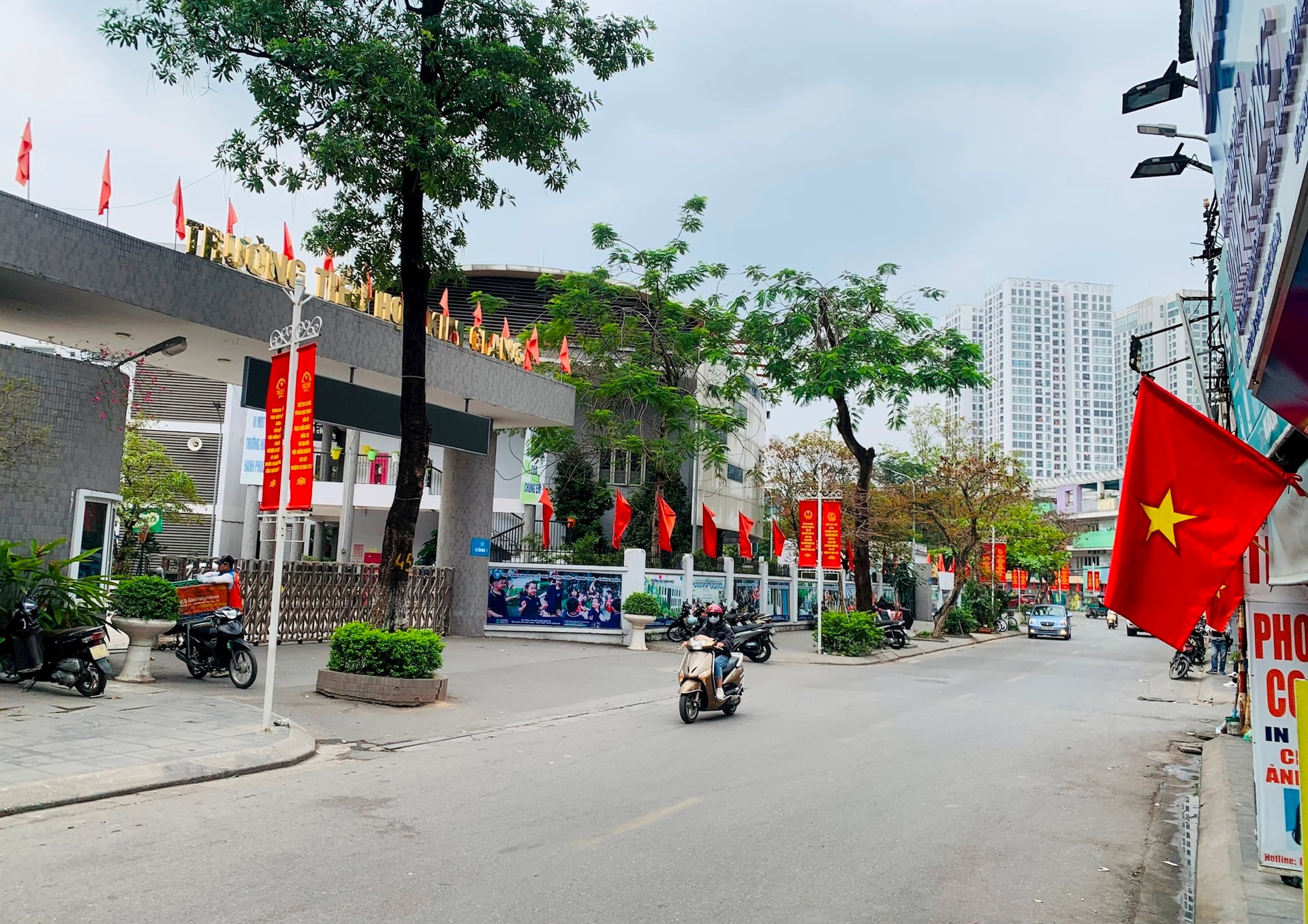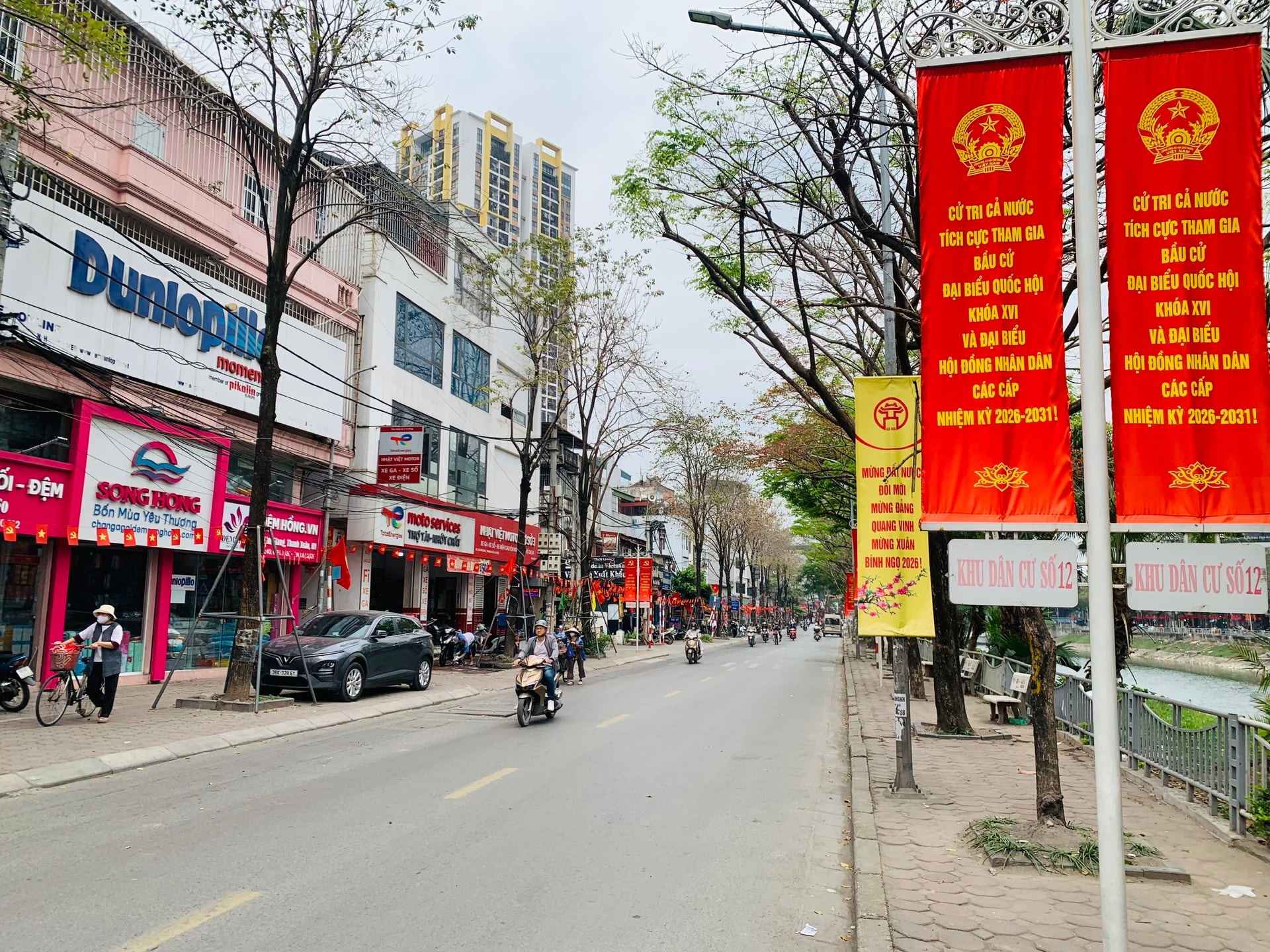 Trên địa bàn phường Khương Đình rực rỡ cờ Tổ quốc, băng rôn, khẩu hiệu chào mừng ngày bầu cử đại biểu Quốc hội và HĐND các cấp.