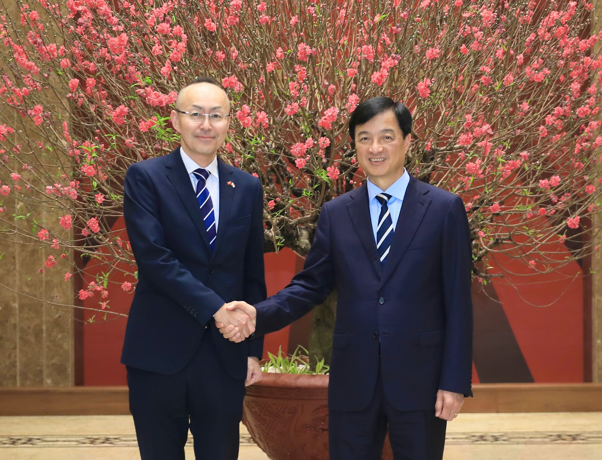 Bí thư Thành ủy Hà Nội Nguyễn Duy Ngọc đón tiếp Trưởng Đại diện JICA tại Việt Nam Kobayashi Yosuke. Ảnh: Quang Thái