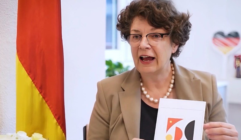 Đại sứ Đức tại Việt Nam Helga Margarete Barth giới thiệu logo kỷ niệm kỷ niệm 50 năm thiết lập quan hệ ngoại giao giữa Việt Nam và Cộng hòa Liên bang Đức (1975-2025)