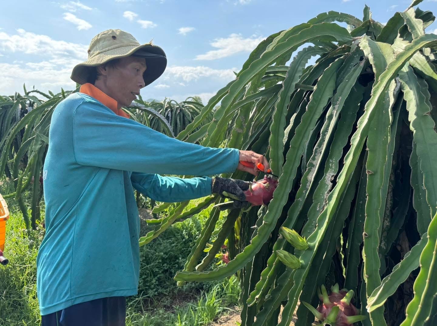 Nông dân Lâm Đồng thu hoạch thanh long