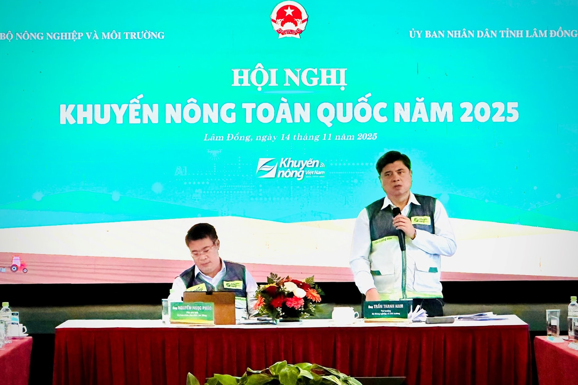 Thứ trưởng Bộ Nông nghiệp và Môi trường Trần Thanh Nam và Phó Chủ tịch UBND tỉnh Lâm Đồng Nguyễn Ngọc Phúc chủ trì hội nghị.