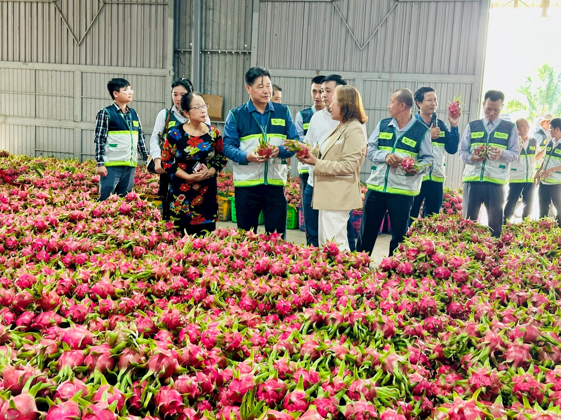 Đoàn công tác của Trung tâm Khuyến nông Quốc gia tham quan tại Cơ sở thu mua thanh long xuất khẩu Như Ý tại xã Hàm Thuận (Lâm Đồng)