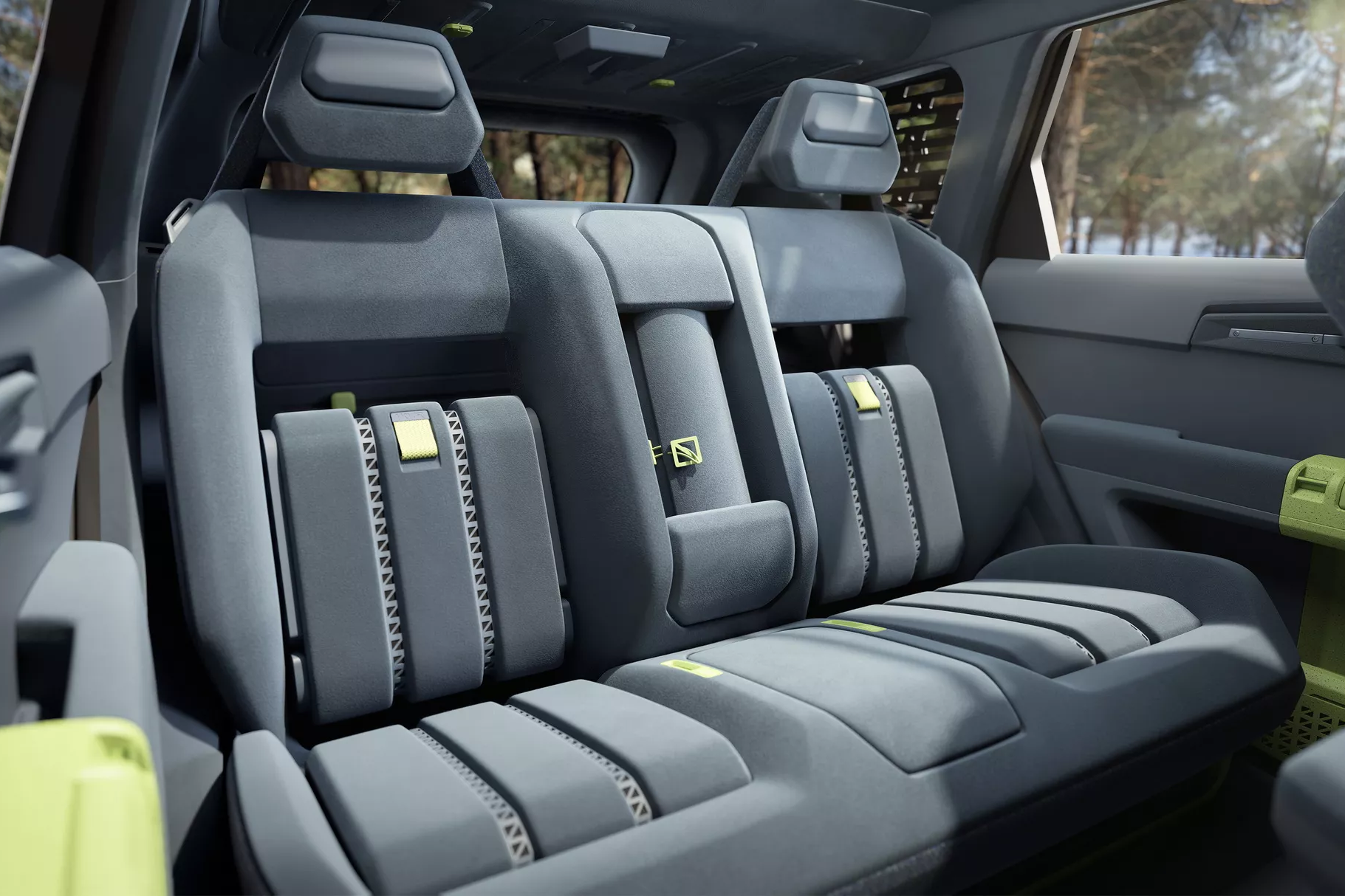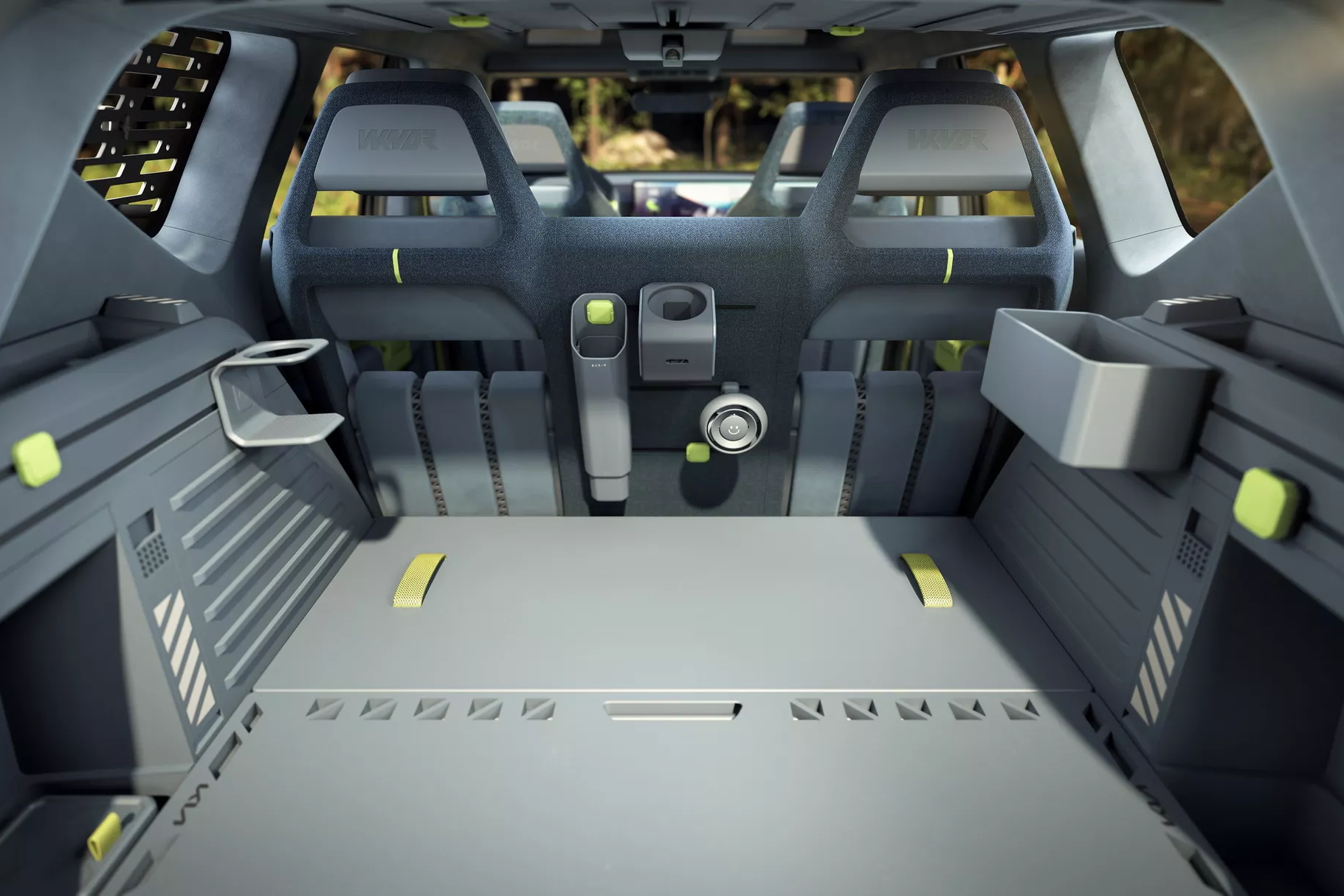 Ghế ngồi cũng được thiết kế theo phong cách việt dã với nhiều chi tiết cắt xẻ thông gió. Tuy nhiên, trang bị này có thể sẽ không xuất hiện trên phiên bản thương mại.