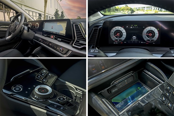 Khoang lái của KIA Sportage 2026 gây choáng ngợp bởi màn hình đôi cong tràn viền 12,3 inch, tích hợp toàn bộ các tính năng điều khiển, giúp loại bỏ hầu hết các phím bấm vật lý truyền thống. Táp-lô được tối giản hóa tối đa, mang lại cảm giác sang trọng như các dòng xe hạng sang.