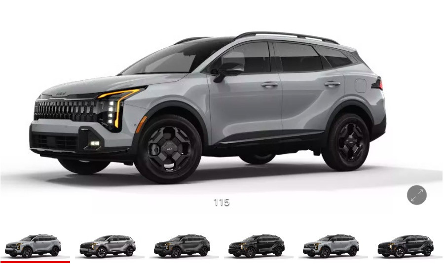 Ở phiên bản Sportage EX tiêu chuẩn, lựa chọn còn hạn chế hơn nữa. Danh sách màu sơn chỉ bao gồm đen Ebony, đen Fusion, xám Gravity, xám Metal, xám Steel, trắng ngọc trai và trắng tuyết. Nói cách khác, hoàn toàn không có bất kỳ màu sắc nổi bật nào khác ngoài gam màu xám.