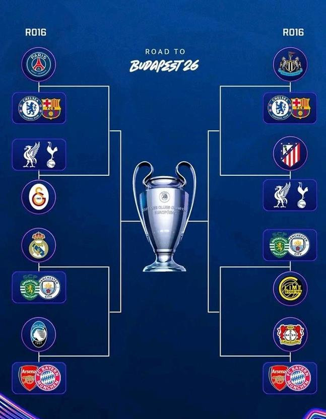 Ở một nhánh đấu khác, Barcelona và Chelsea (nhóm hạt giống 5/6) đang chờ đợi đối thủ từ cặp PSG hoặc Newcastle United. Một cuộc tái ngộ giữa PSG và Barcelona sẽ là cơ hội để gã khổng lồ xứ Catalan phục thù sau thất bại tại vòng phân hạng mùa này. Trong khi đó, Newcastle đối mặt với thử thách cực đại dù tinh thần chiến đấu của "Chích chòe" đang lên cao sau vòng play-off.