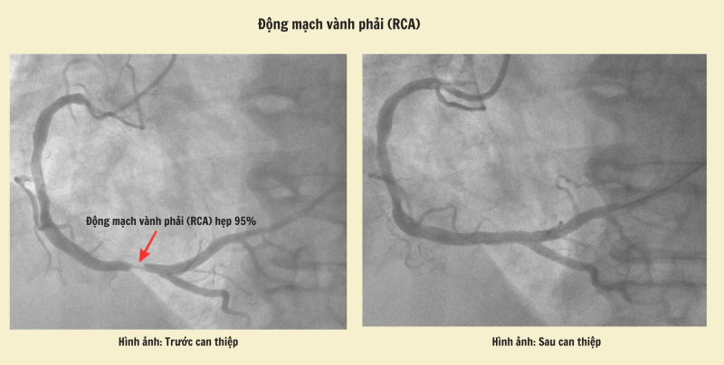 Động mạch vành phải của bệnh nhân trước và sau can thiệp.