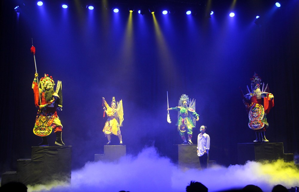 Các nghệ sĩ trong một lớp tái hiện hình ảnh nghệ thuật Hát bội trong kịch múa "Sống"