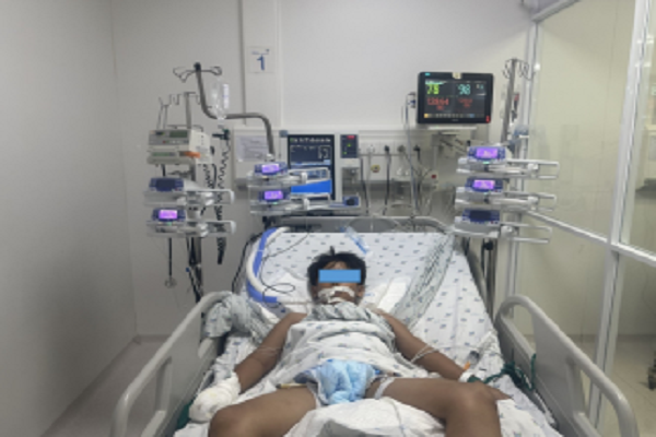 Cậu bé được đưa đến Bệnh viện đa khoa Trà Vinh trong tình trạng mê, kích thích không đáp ứng, thở yếu. Sau thăm khám khẩn, trẻ được đặt nội khí quản thở máy, ghi nhận trào bọt hồng qua ống – dấu hiệu phù phổi cấp.