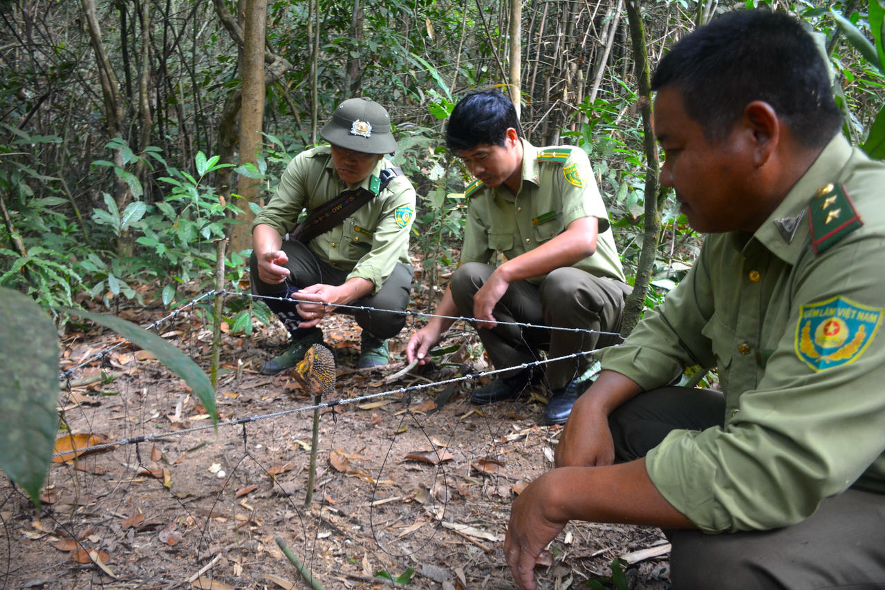 Nhóm tuần tra phát hiện, kiểm tra một hệ thống bẫy dây thòng lọng được giăng sẵn với mồi nhử. Việc phát hiện sớm các loại bẫy này giúp giải cứu kịp thời các loài thú rừng quý hiếm như gà rừng, nhím, các loài chồn, tê tê…