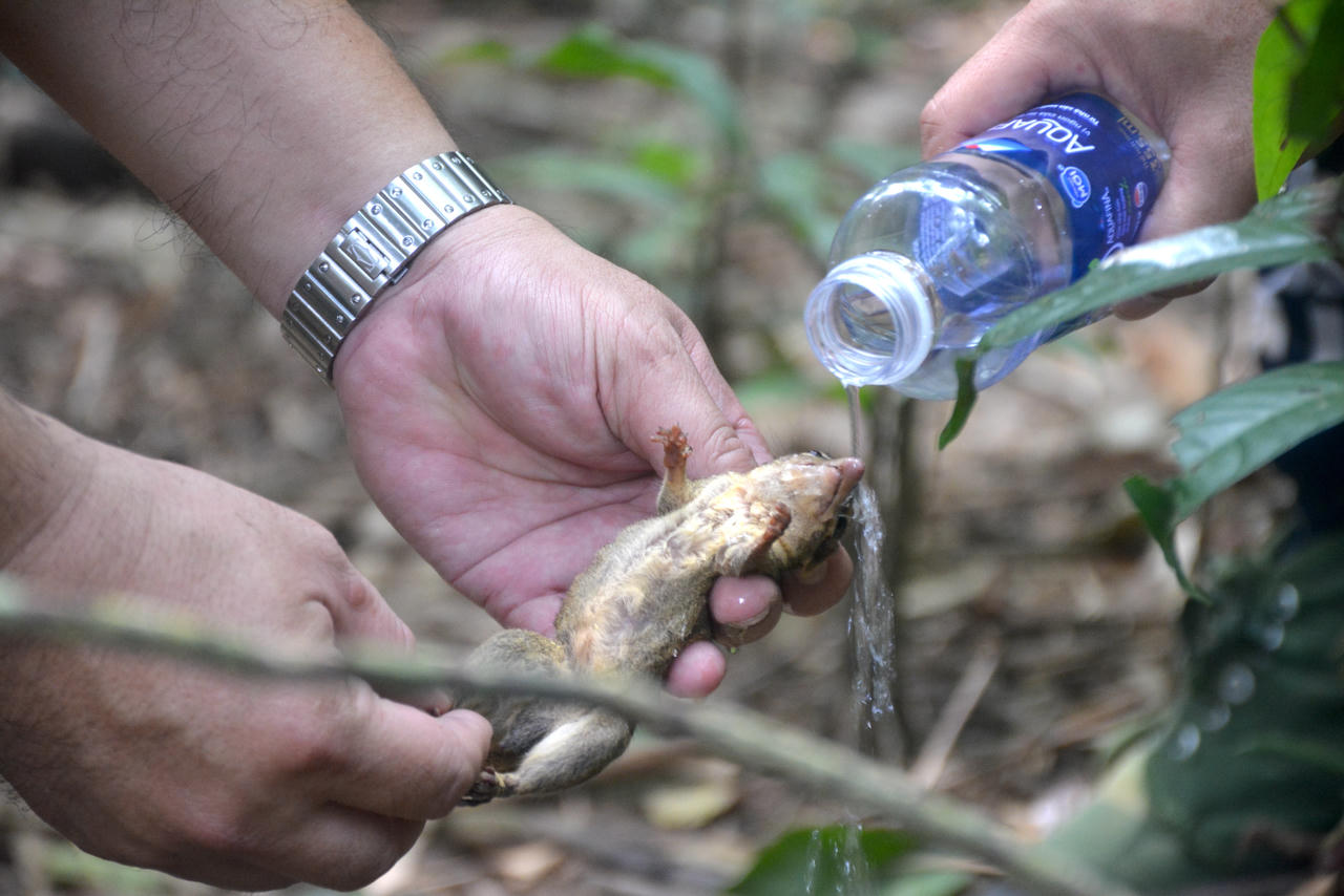 Trong ảnh, cán bộ kiểm lâm đang sơ cứu, tiếp nước cho một cá thể sóc nhỏ vừa được giải cứu khỏi bẫy thú. Mỗi sinh mạng được cứu sống là một nỗ lực bền bỉ để giữ gìn đa dạng sinh học cho cánh rừng.