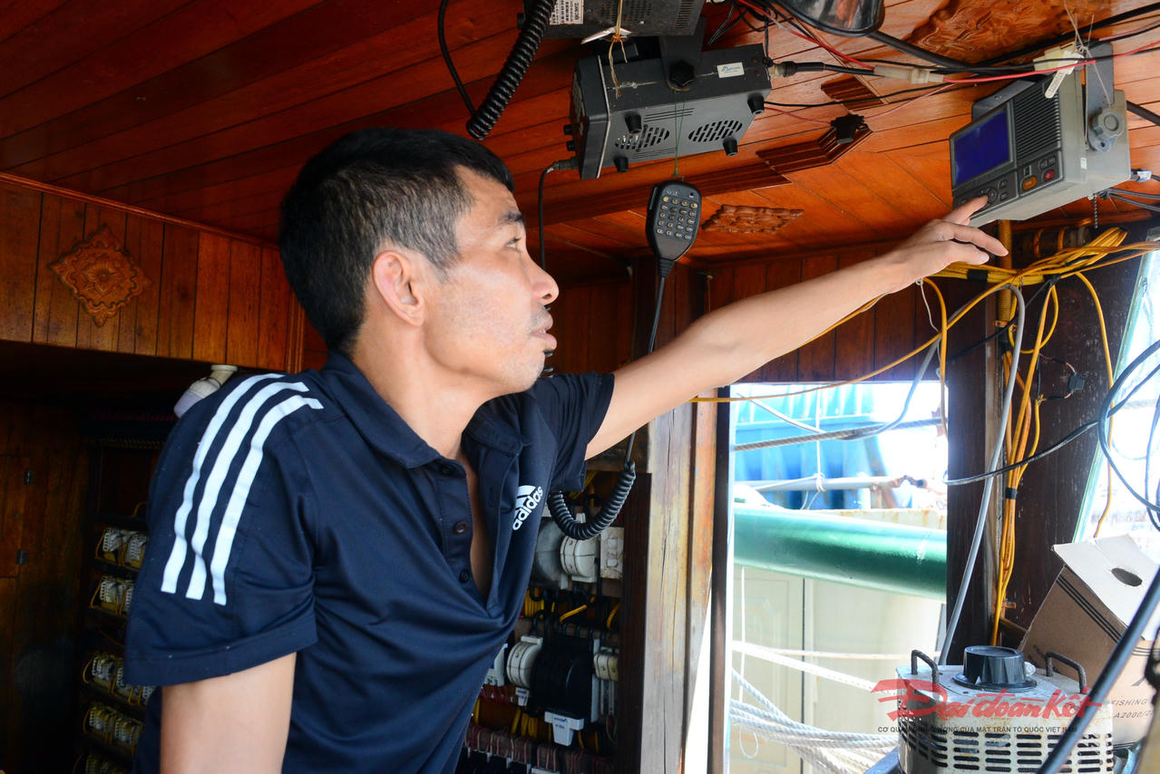 Thuyền Trưởng Phạm Văn Phòng (phường Hà An) kiểm tra thiết bị định vị trước khi khởi hành. Ảnh: Nguyễn Quý.