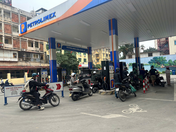 Người dân xếp hàng mua xăng tại cửa hàng ở Hà Nội.