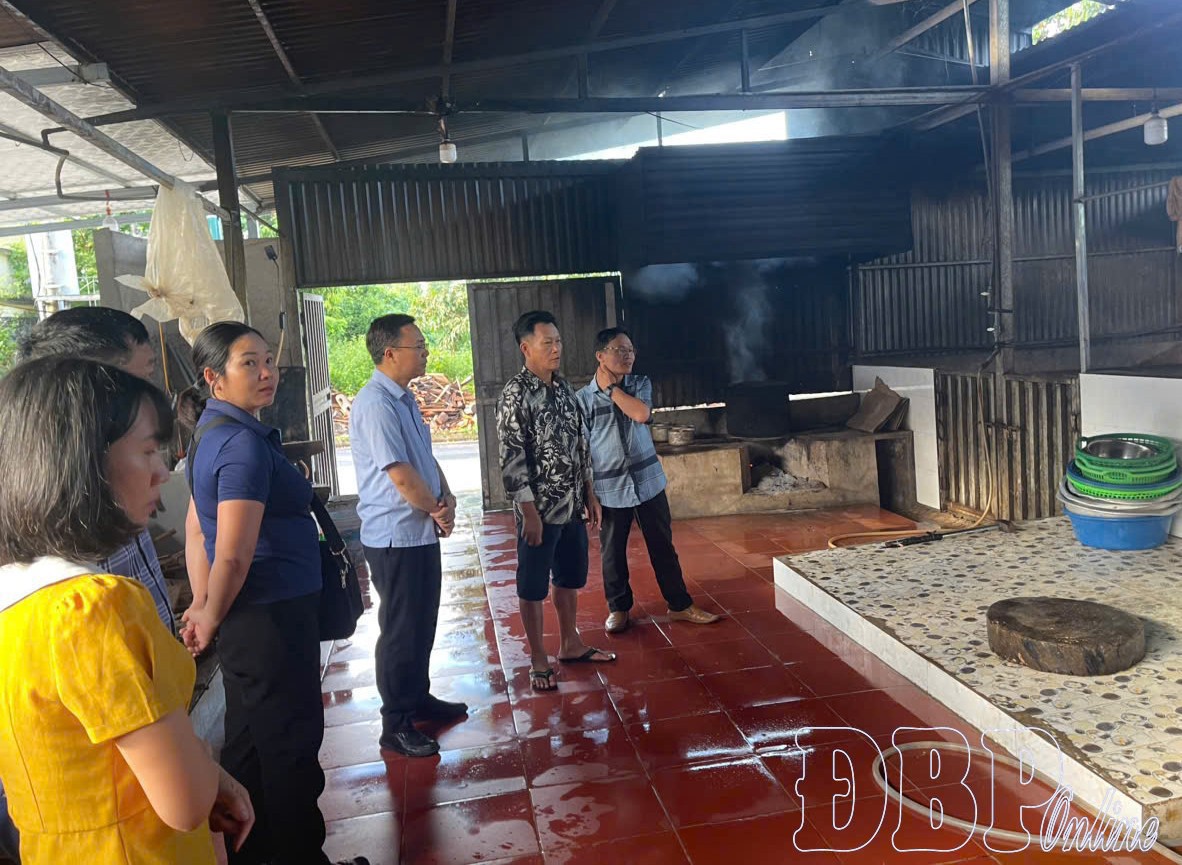 Lực lượng chức năng kiểm tra điều kiện của cơ sở giết mổ động vật trên địa bàn xã Mường Nhé.