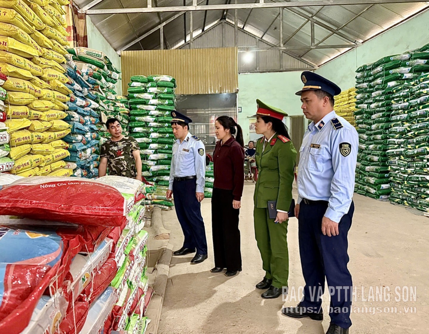 Lực lượng chức năng kiểm tra cửa hàng kinh doanh vật tư nông nghiệp trên địa bàn xã Hữu Lũng