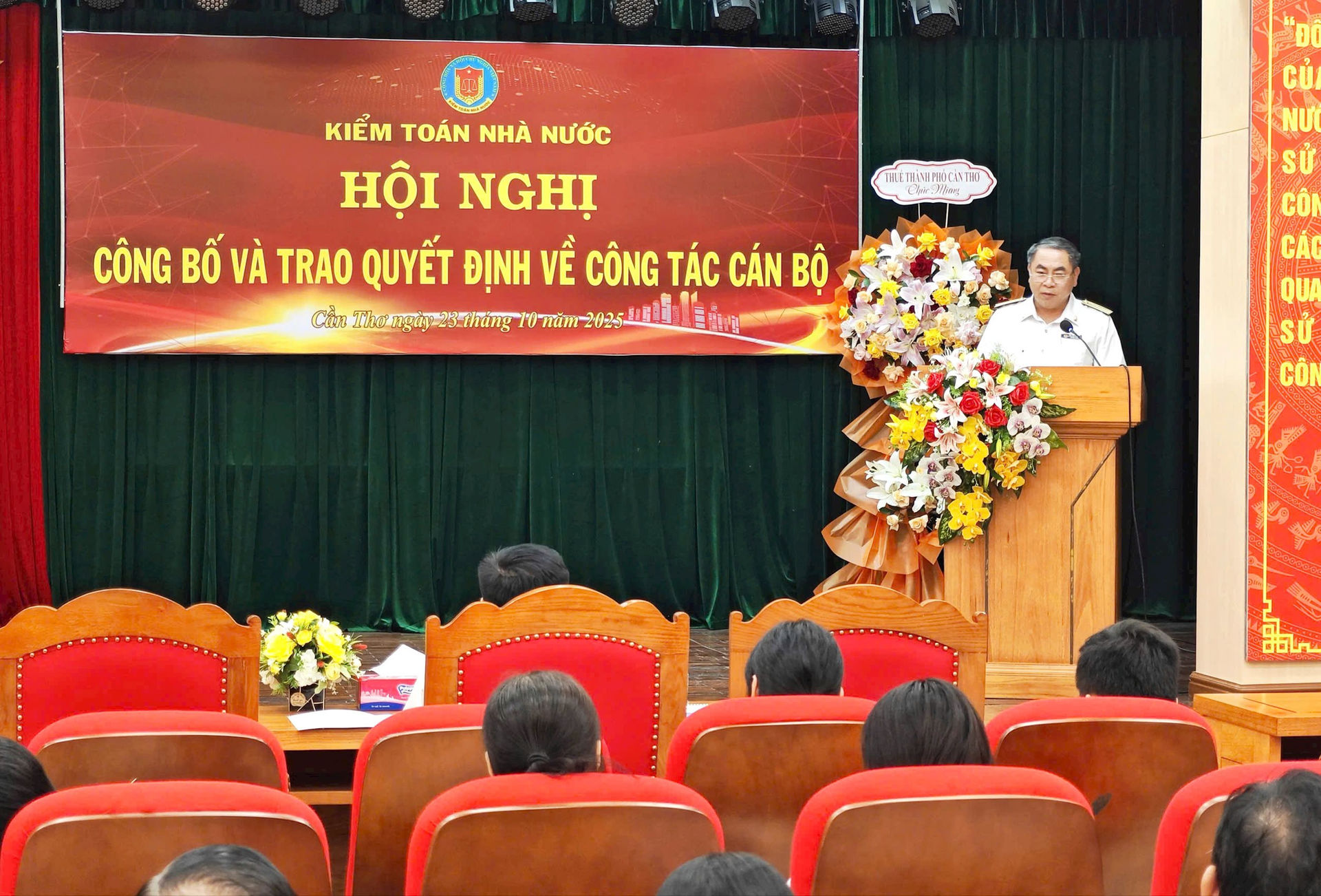 Thay mặt Lãnh đạo KTNN, Phó Tổng Kiểm toán nhà nước Trần Minh Khương đã trao Quyết định bổ nhiệm và tặng hoa chúc mừng đồng chí Phạm Quang Hưng; đồng thời đề nghị đồng chí Phạm Quang Hưng sớm nắm bắt nhiệm vụ và tình hình địa bàn kiểm toán, phát huy năng lực, kinh nghiệm bản thân, chủ động cùng tập thể lãnh đạo đơn vị xây dựng tập thể vững mạnh, kỷ cương, trách nhiệm và hiệu quả;