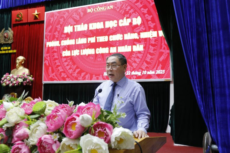 Phó Tổng Kiểm toán nhà nước Trần Minh Khương thông tin tại Hội thảo khoa học "Phòng, chống lãng phí theo chức năng, nhiệm vụ của lực lượng Công an nhân dân". Ảnh: TL