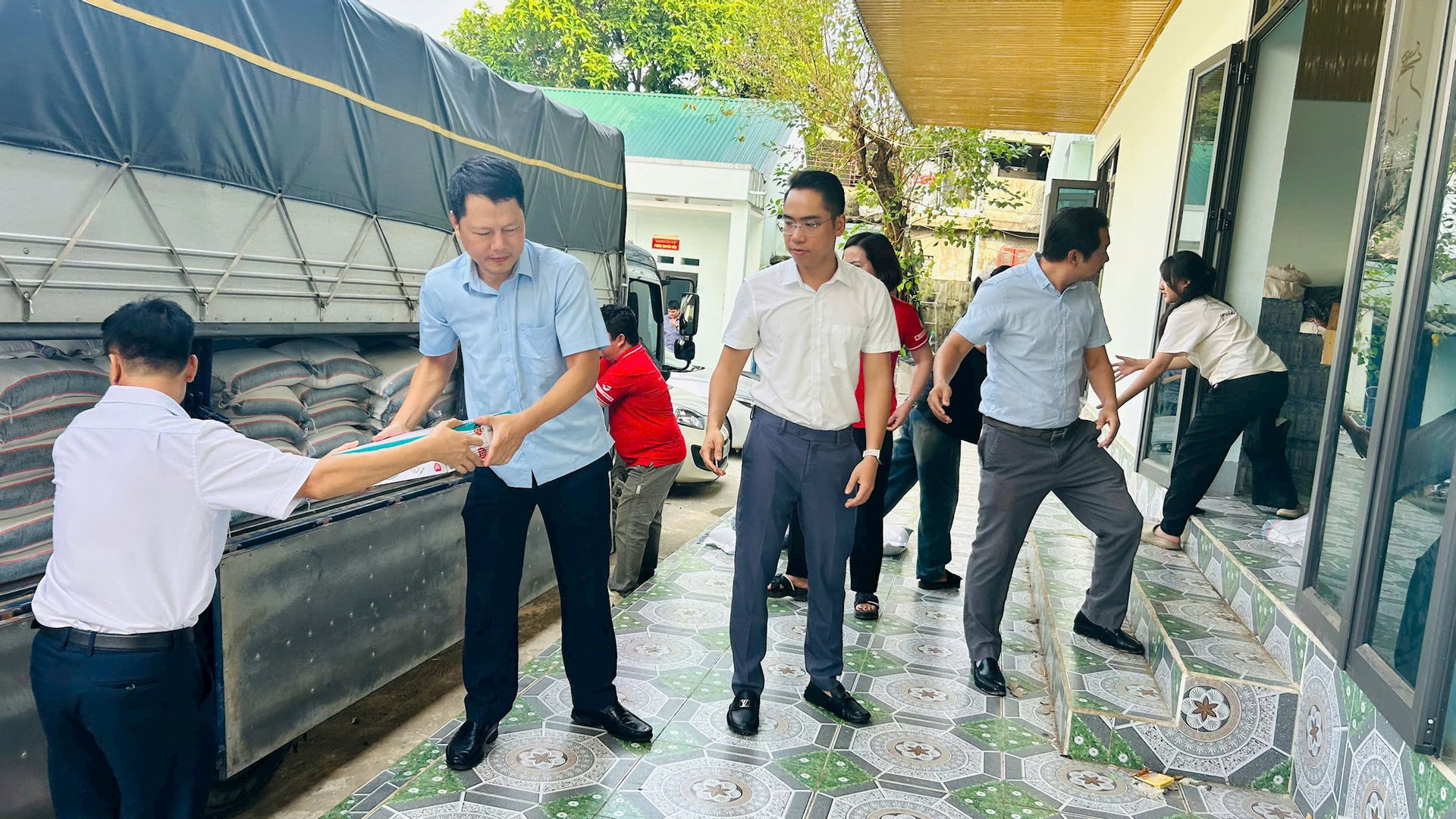 KTNN khu vực X trao 5 tấn gạo và 50 thùng sữa tươi đến bà con vùng bị thiệt hại do mưa bão. Ảnh: Thu Thảo