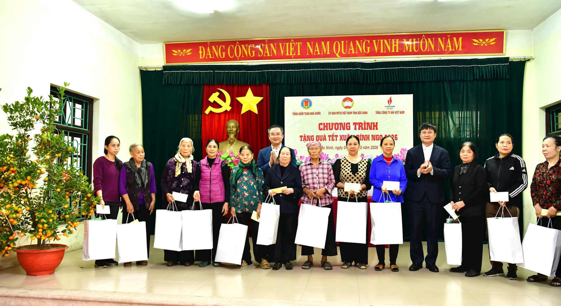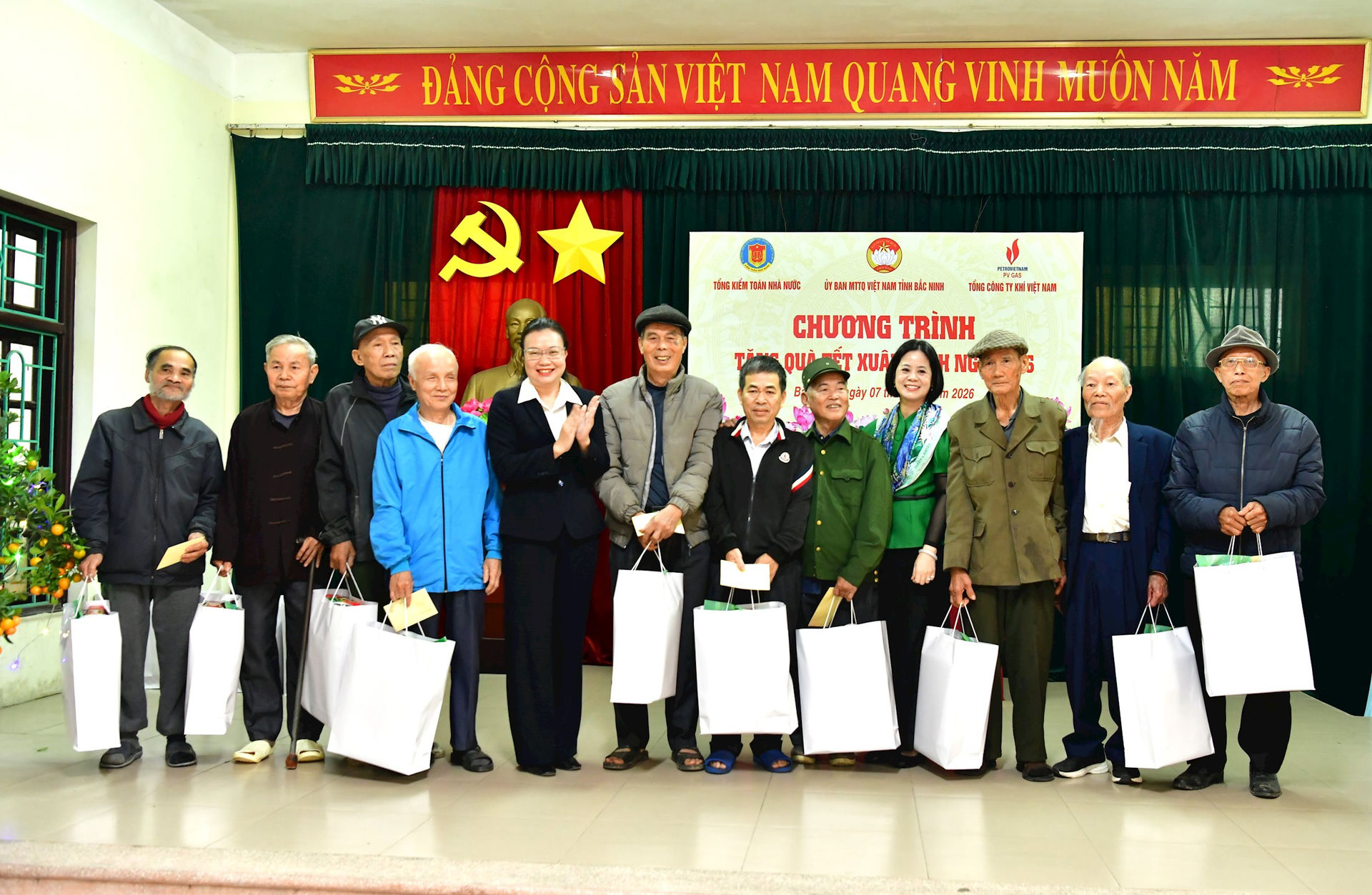 Phát biểu tại buổi trao quà, Chủ tịch Ủy ban MTTQ Việt Nam xã Liên Bão Nguyễn Thị Minh trân trọng cảm ơn Tổng Kiểm toán nhà nước Ngô Văn Tuấn cũng như ngành KTNN và các đối tác đã luôn quan tâm, giúp đỡ bà con có hoàn cảnh khó khăn trên địa bàn xã; đồng thời vui mừng cho biết tỉnh Bắc Ninh đã lo tết cho 100% hộ nghèo, hộ cận nghèo có cái tết đầm ấm.
