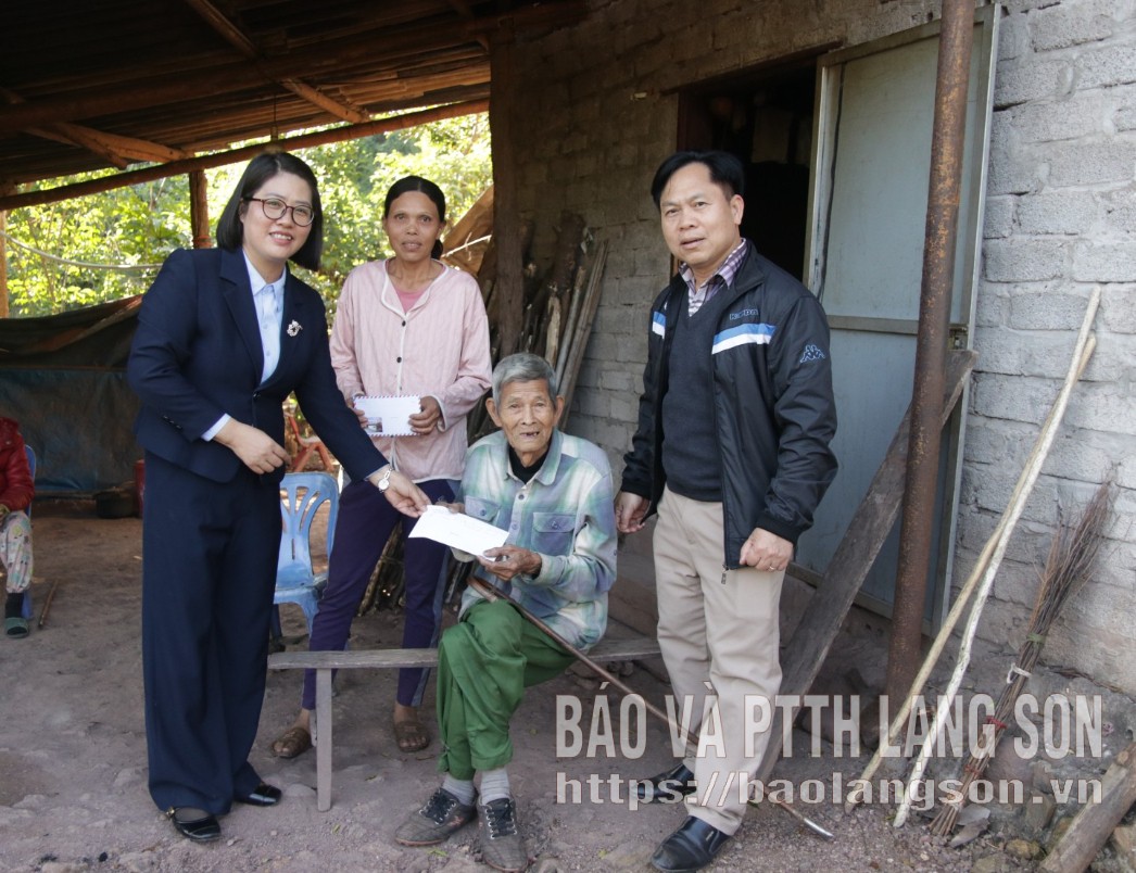 Lãnh đạo Sở Nông nghiệp và Môi trường cùng lãnh đạo xã Châu Sơn tặng quà cho hộ nghèo trên địa bàn xã Châu Sơn