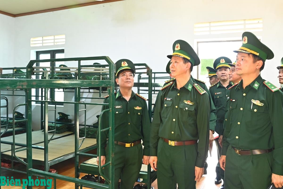 Đoàn kiểm tra nơi ngủ nghỉ, sinh hoạt của chiến sĩ mới. Ảnh: Thanh Giang
