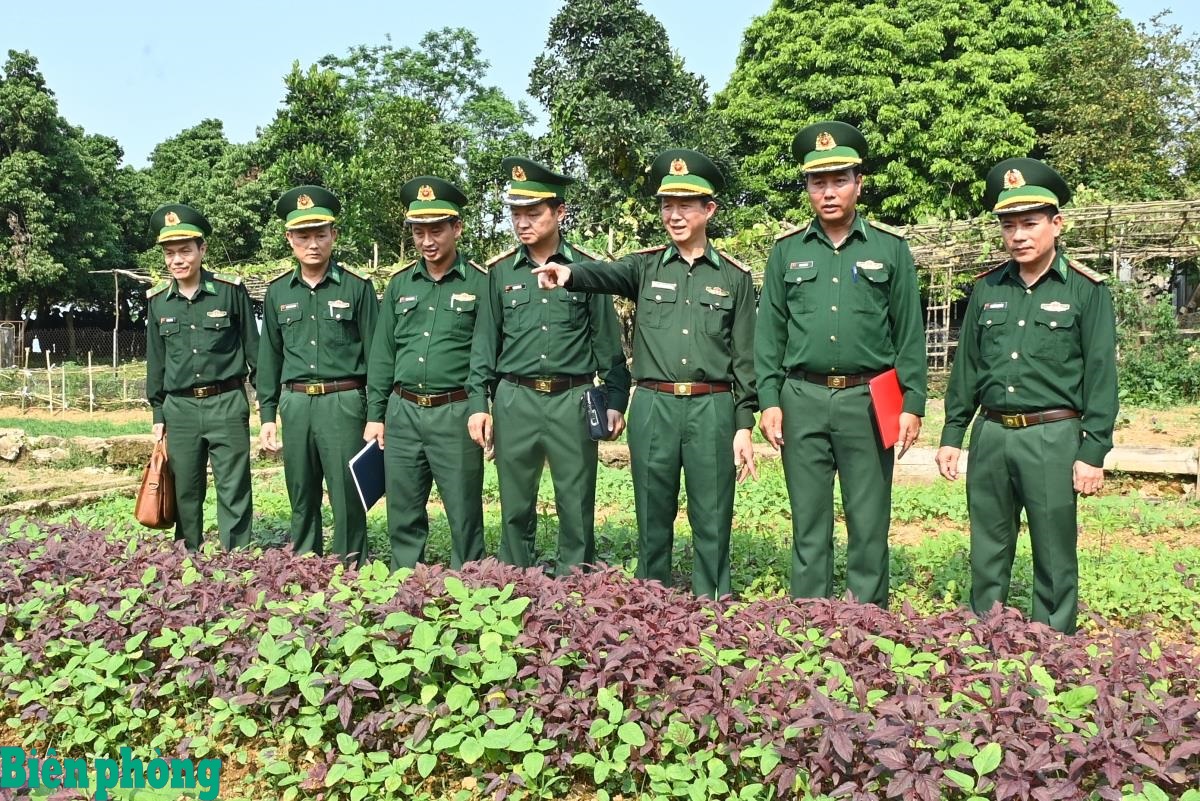 Kiểm tra công tác tăng gia, sản xuất của đơn vị. Ảnh: Thanh Giang