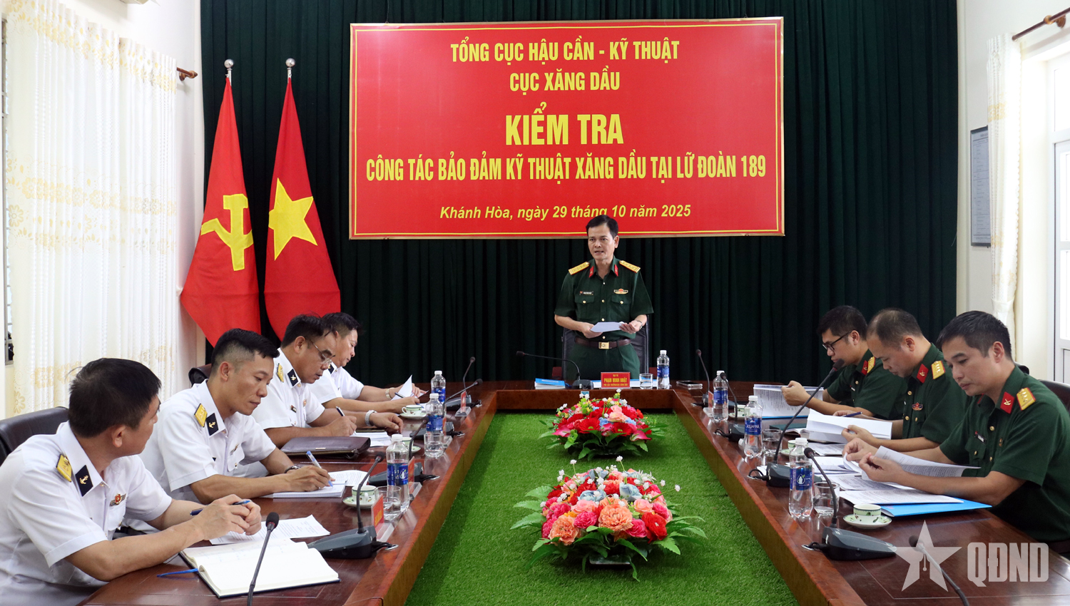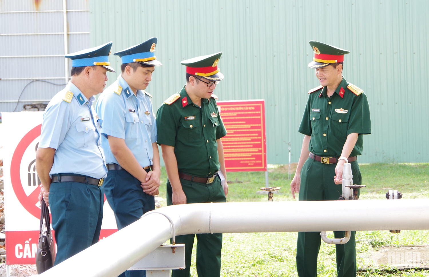 Tại các đơn vị, đoàn kiểm tra nghe chỉ huy đơn vị báo cáo kết quả thực hiện công tác bảo đảm kỹ thuật xăng dầu từ đầu năm 2025 đến nay và trực tiếp kiểm tra thực tế ở một số khu vực.
