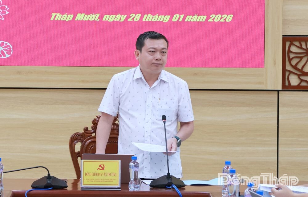 Đồng chí Phan Văn Thương, Ủy viên Ban Thường vụ Tỉnh ủy, Trưởng Ban Nội chính Tỉnh ủy phát biểu tại buổi làm việc.