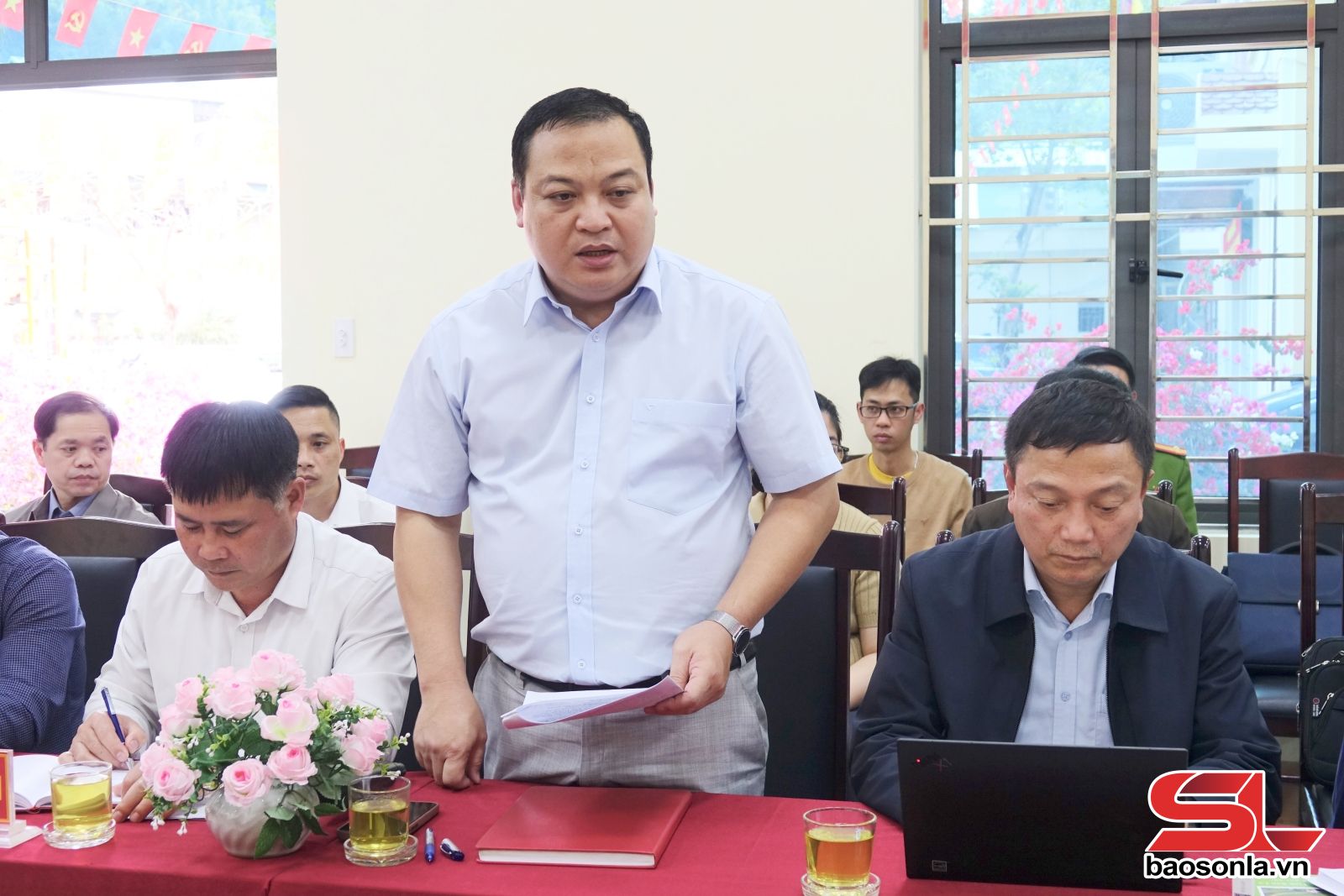 Lãnh đạo phường Chiềng An phát biểu tại cuộc làm việc.