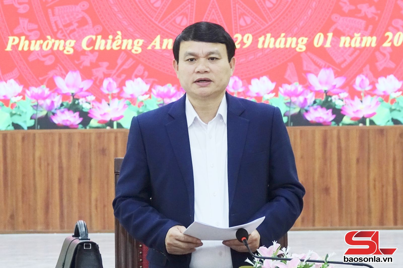 Lãnh đạo phường Chiềng Sinh phát biểu.