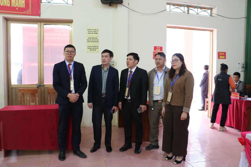 Đoàn đến kiểm tra trực tiếp các khu vực bỏ phiếu số 01, 02, 05, 06 xã Trường Hà; số 09, 11 xã Cần Yên; số 10 xã Thanh Long và số 08 xã Thông Nông.
