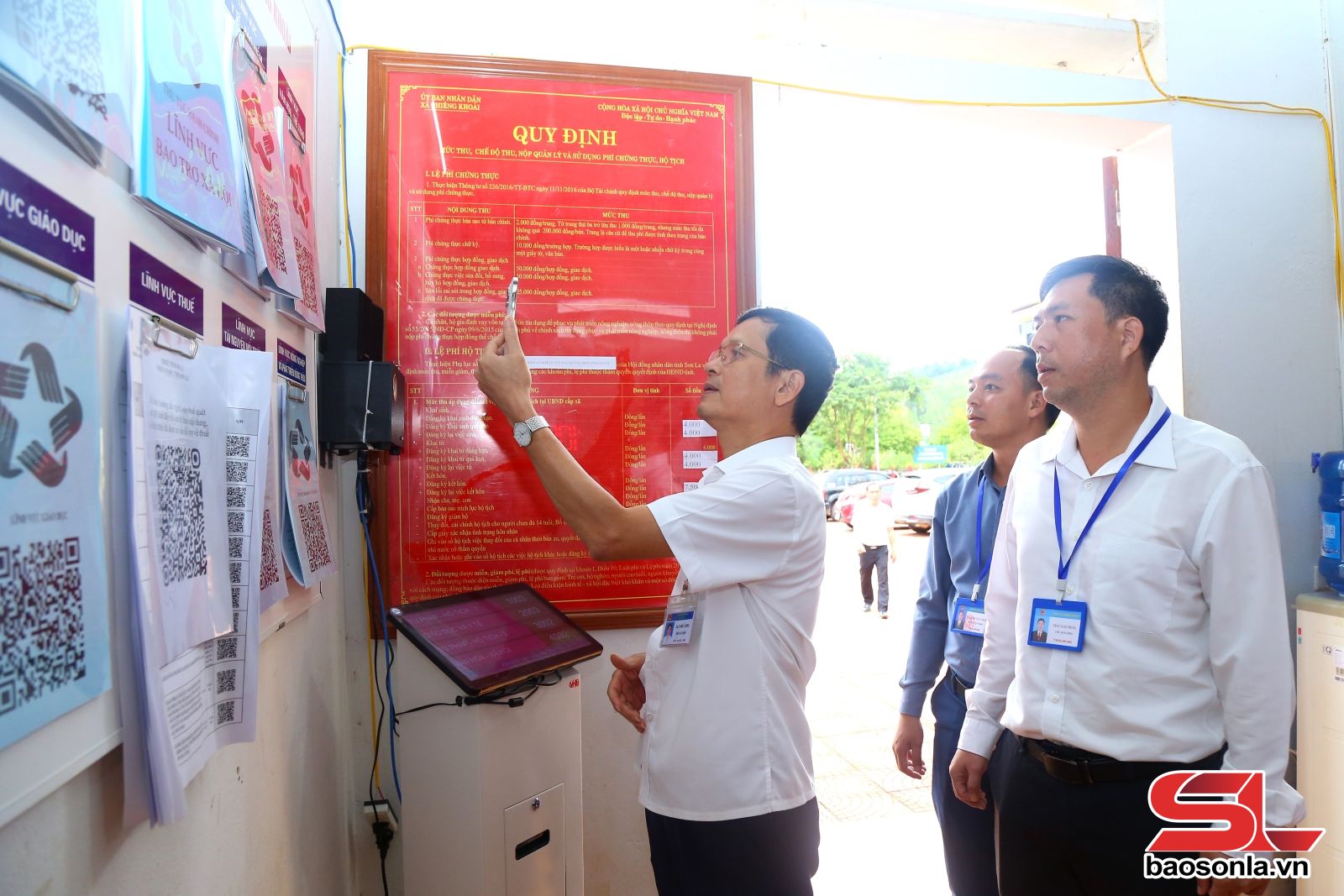 Đoàn kiểm tra liên ngành của tỉnh kiểm tra niêm yết TTHC tại Trung tâm Phục vụ hành chính công xã Phiêng Khoài.