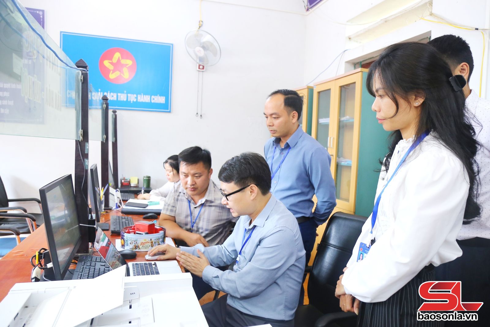 Đoàn kiểm tra liên ngành của tỉnh kiểm tra việc thi hành công vụ tại Trung tâm Phục vụ hành chính công xã Phiêng Khoài.