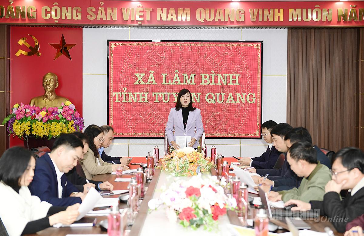 Đồng chí Phạm Thị Minh Xuân, Ủy viên Ban Thường vụ Tỉnh ủy, Phó Chủ tịch HĐND tỉnh phát biểu kết luận buổi kiểm tra tại xã Lâm Bình.