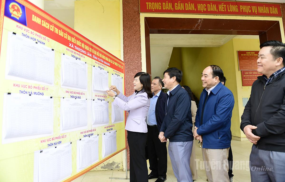 Đồng chí Phạm Thị Minh Xuân, Ủy viên Ban Thường vụ Tỉnh ủy, Phó Chủ tịch HĐND tỉnh kiểm tra chuẩn bị công tác bầu cử tại xã Thượng Lâm.